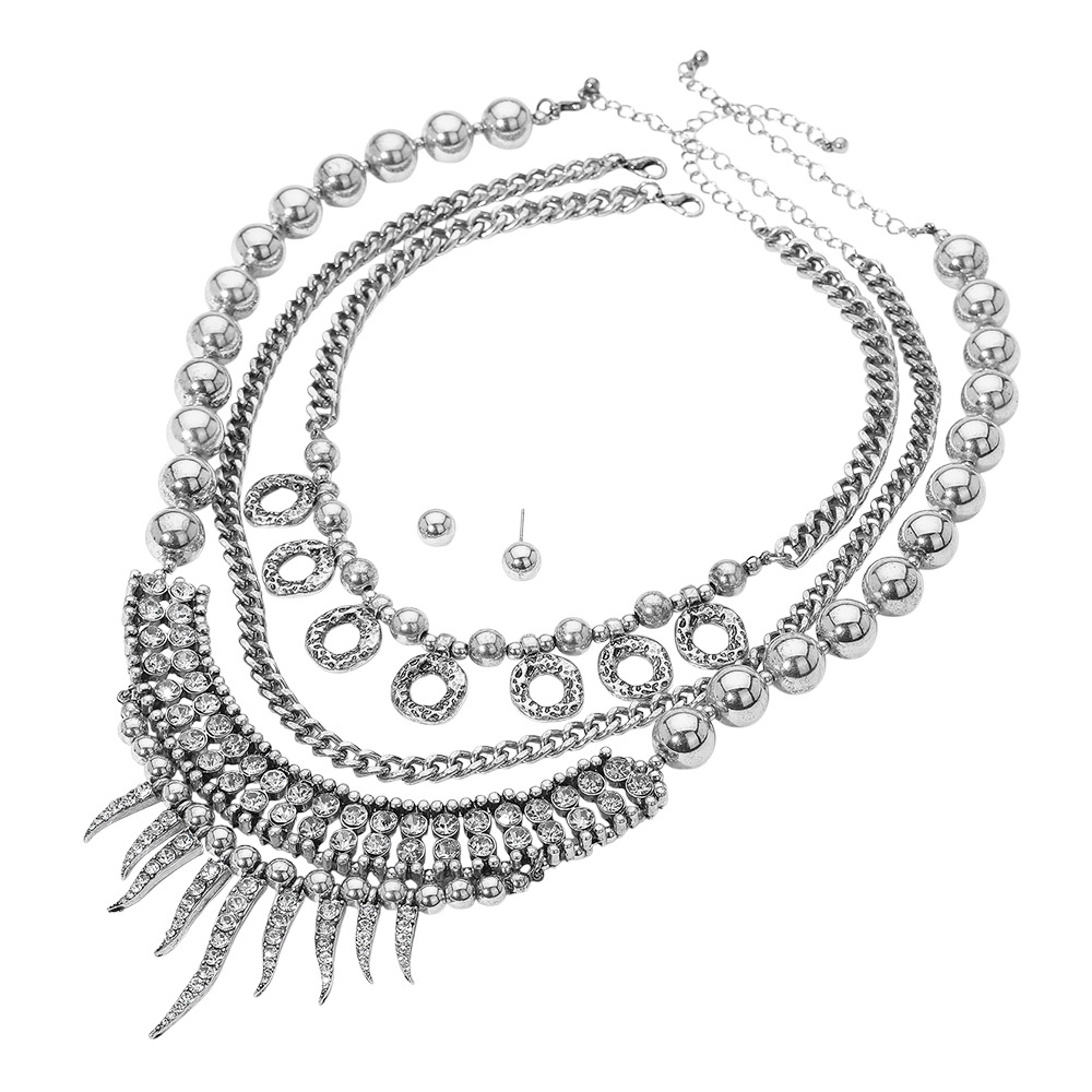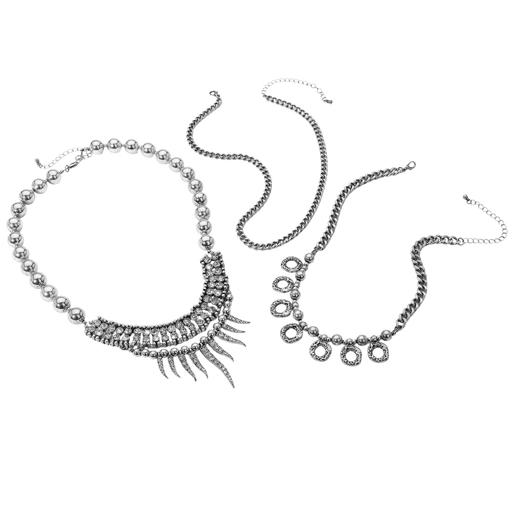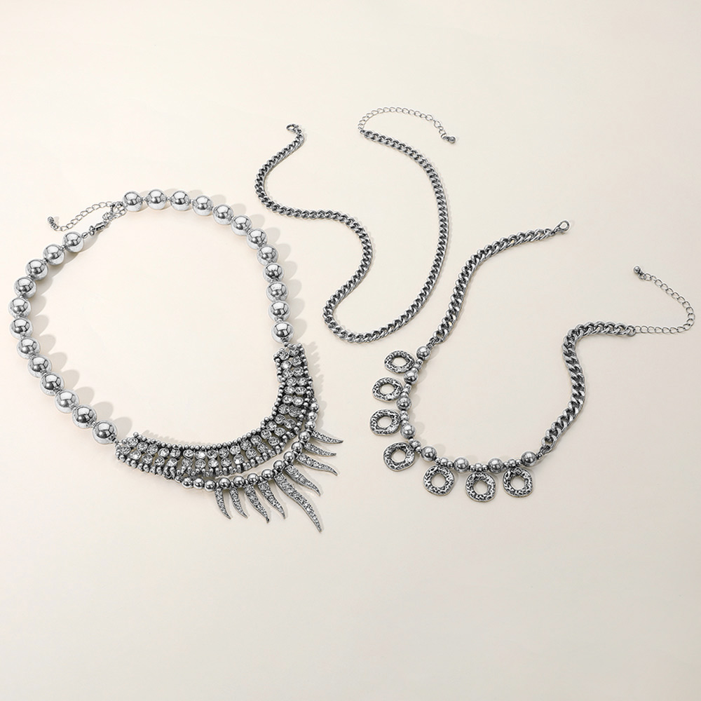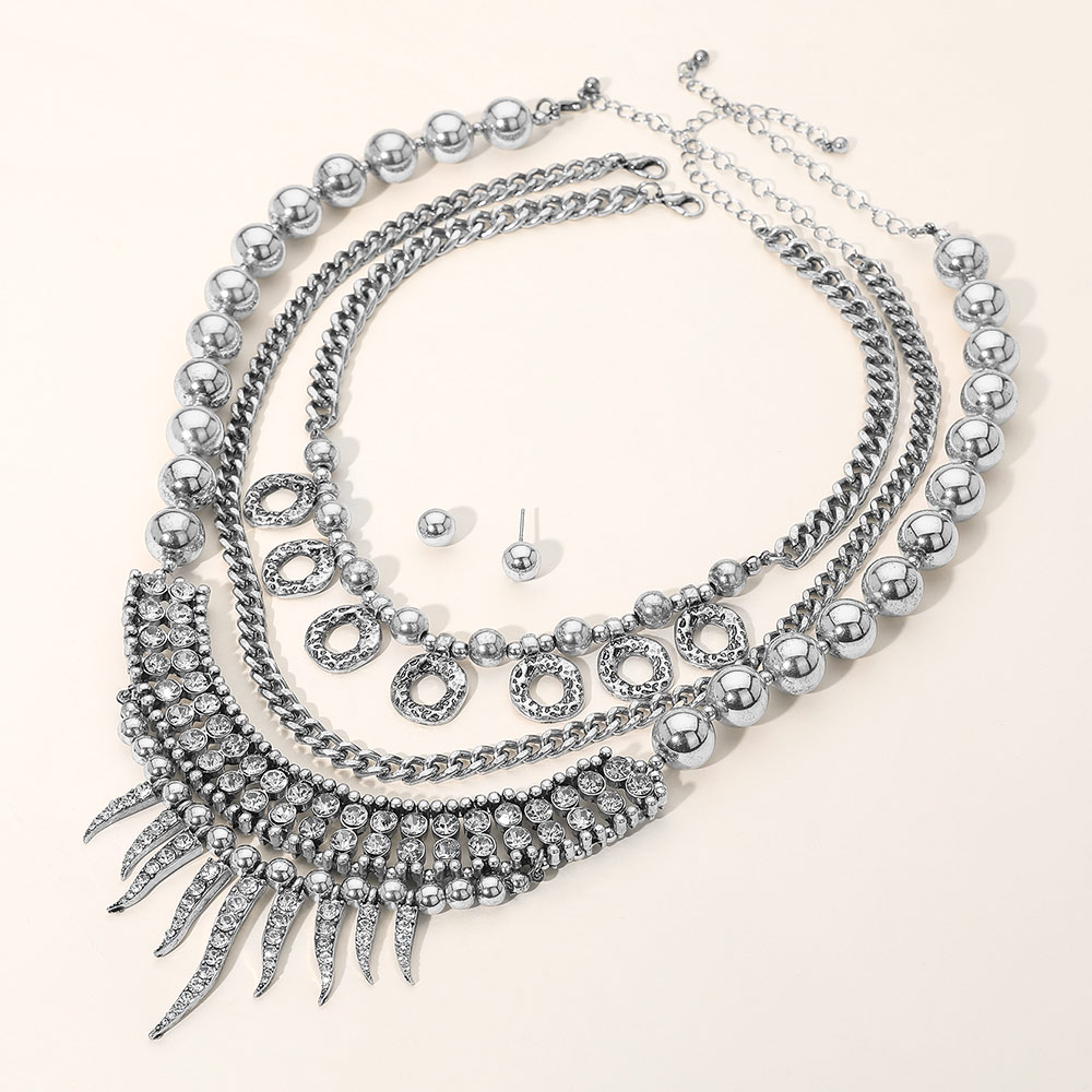 3PCS - Rhinestone Cluster Beads Mixed Chain Layered Statement Necklace Set