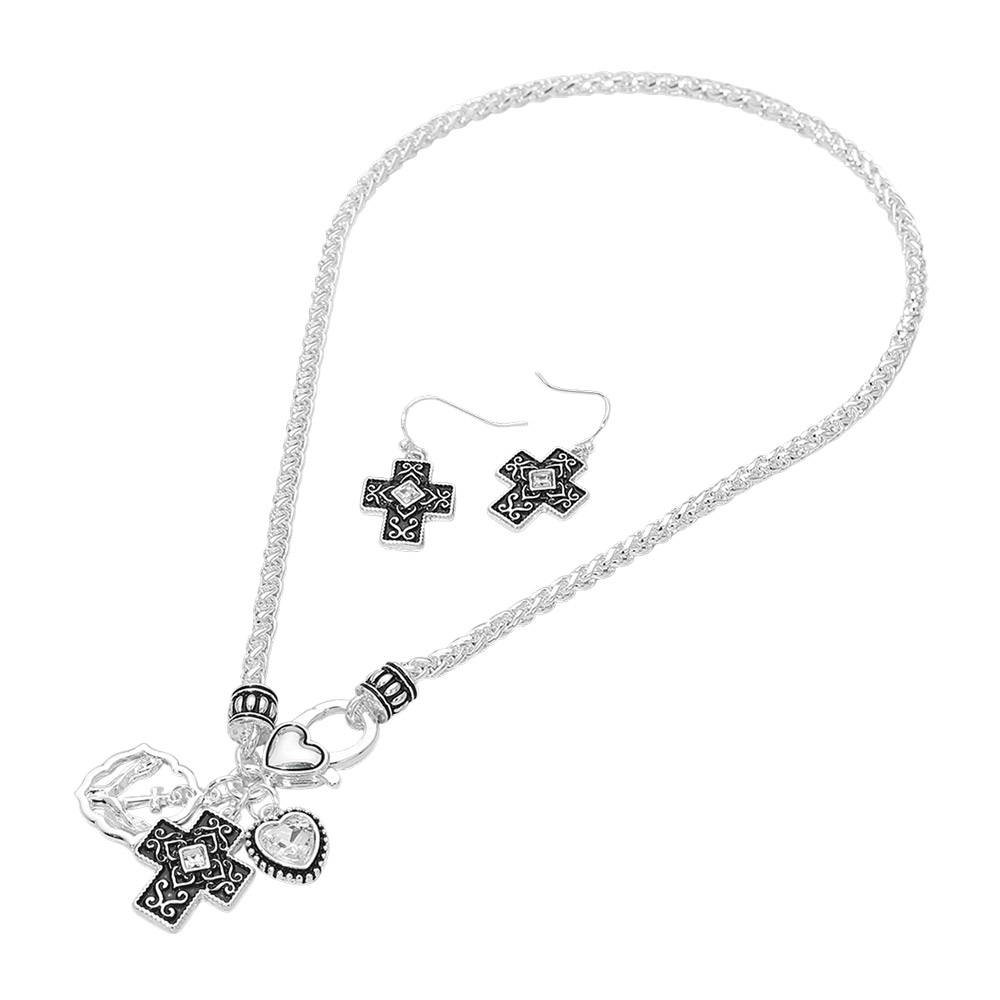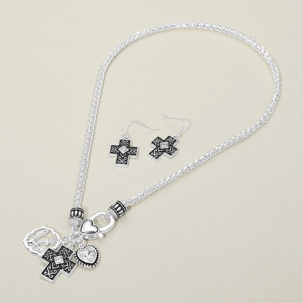 Details • Necklace Size : 17" L • Decor Size : 1" L • Earrings Size : 1" L • This cross charm necklace and matching earring set features faith-inspired accents with a coordinated pendant and drop earrings. Designed for everyday wear or special occasions, it offers meaningful style for church events, religious celebrations, gifting, or personal expression with a timeless and versatile look. • Lead and Nickel Compliant