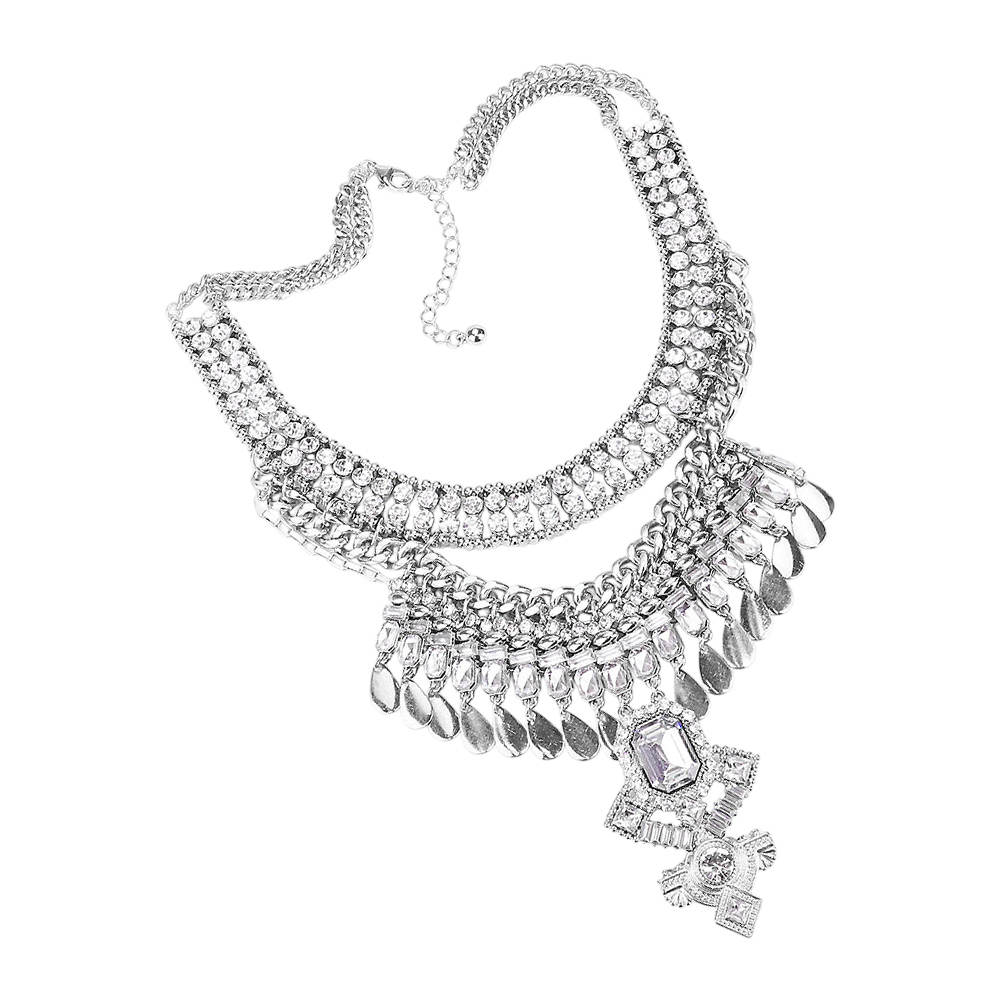 Sunburst Cross Heart Teardrop Stone Charm Station Necklace