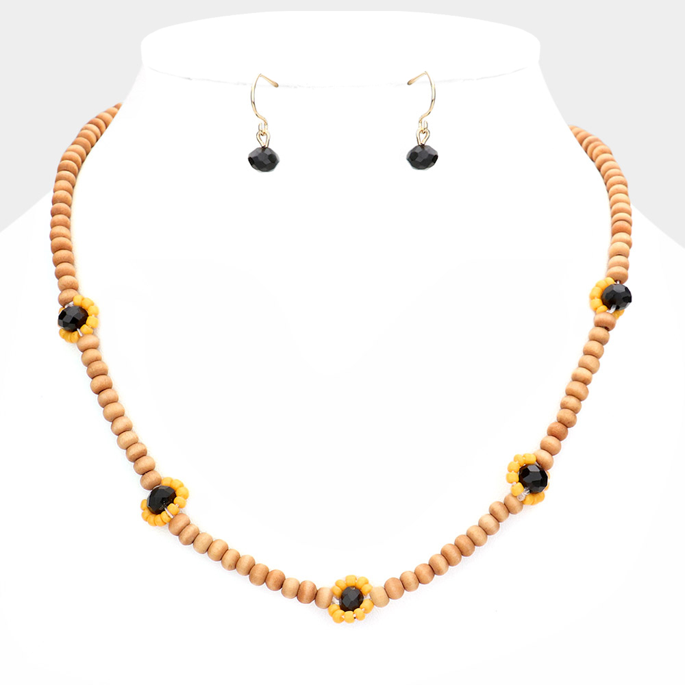 Faceted Floral Accent Wooden Beaded Necklace Faceted Floral Accent Wooden Beaded Necklace Faceted Floral Accent Wooden Beaded Necklace