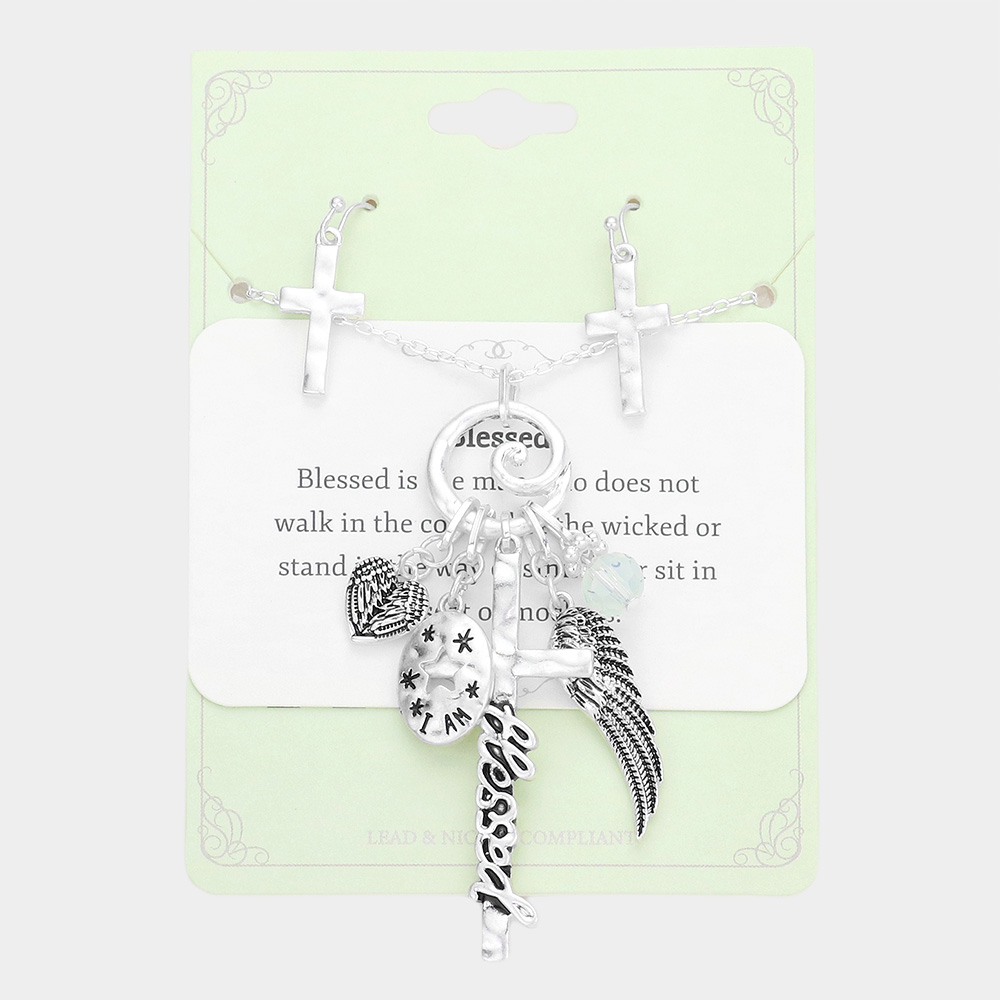 Blessed Message Multi Charm Pendant Necklace