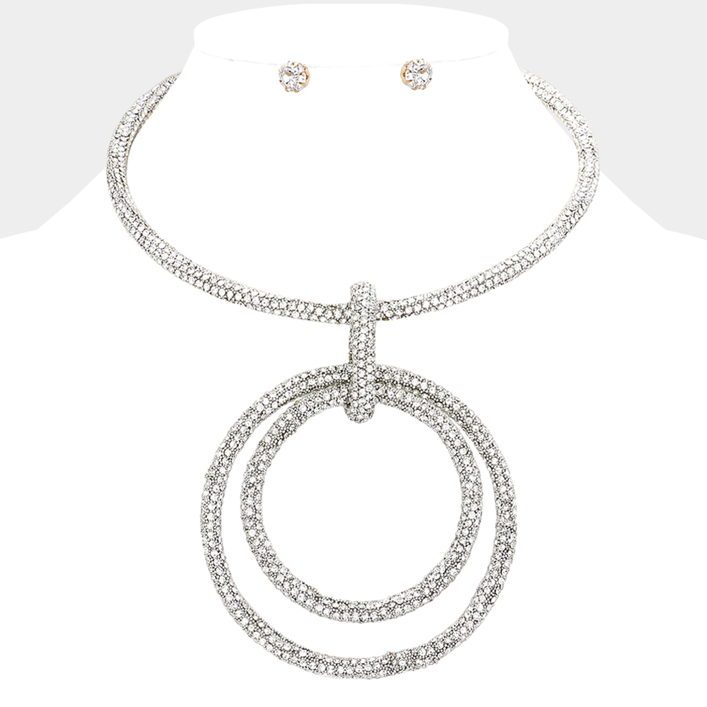 Bling Double Open Circle Pendant Necklace