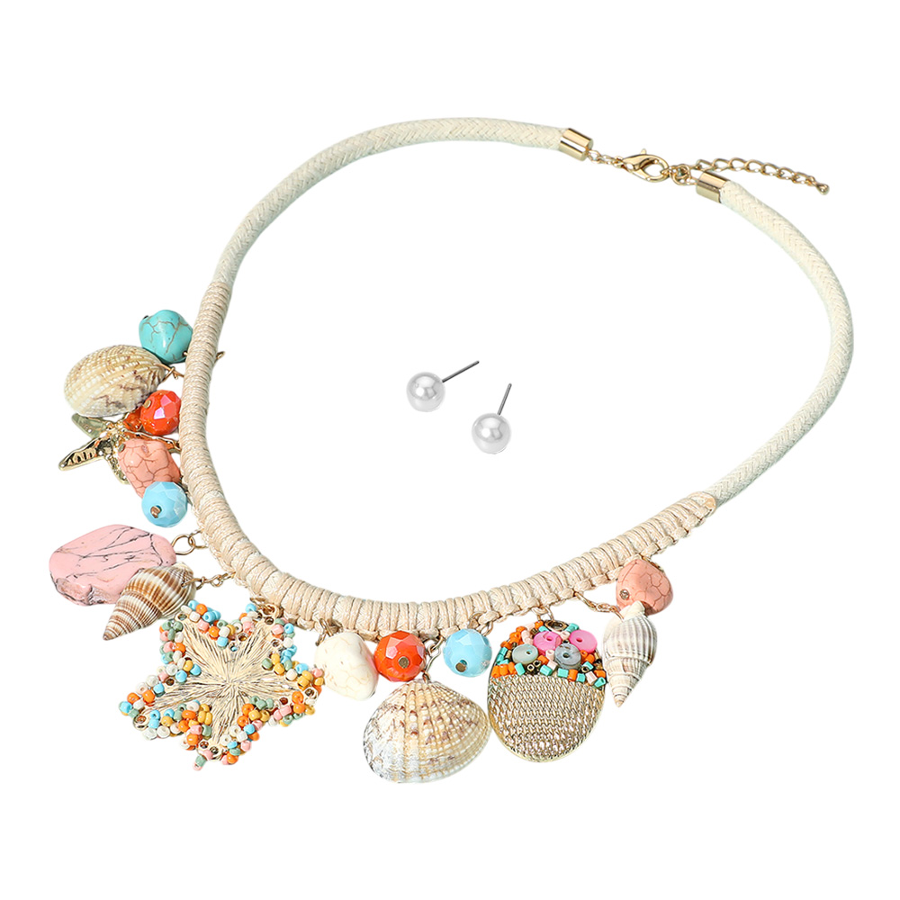 Boho Beaded Starfish Seashell Faceted Beads Charm Threaded Statement Necklace Boho Beaded Starfish Seashell Faceted Beads Charm Threaded Statement Necklace