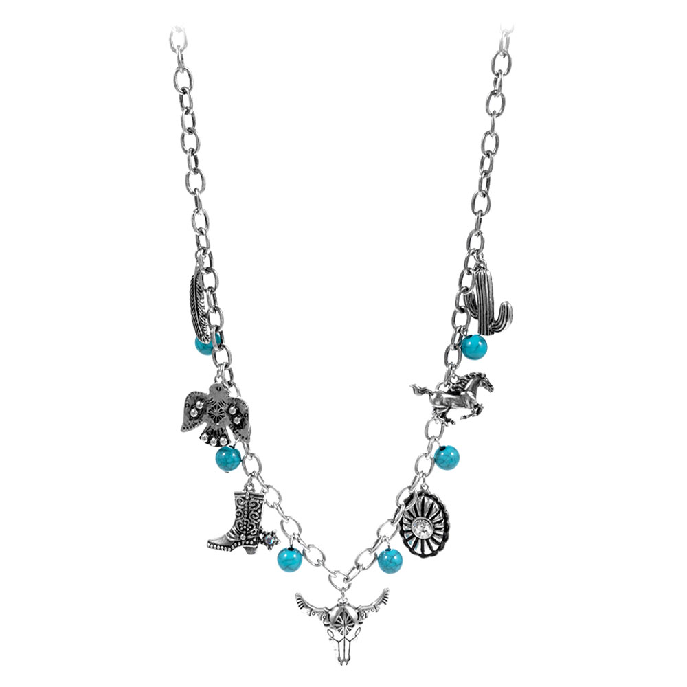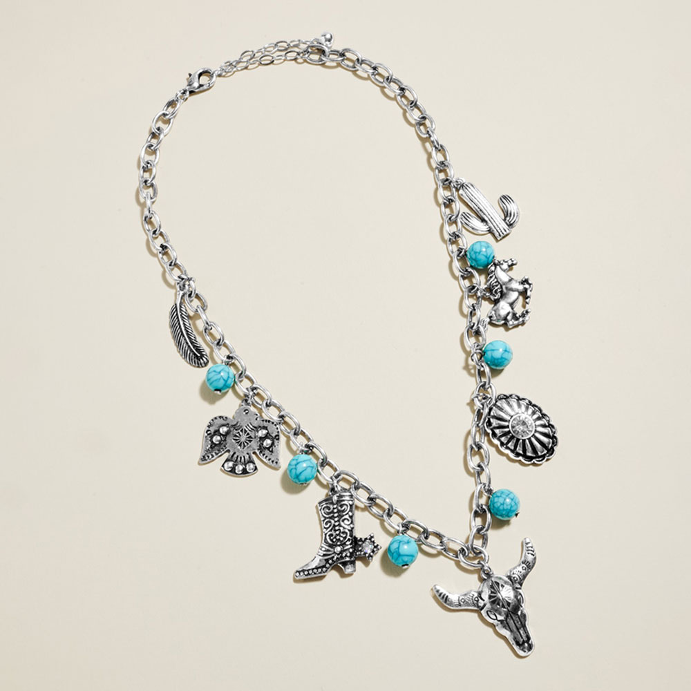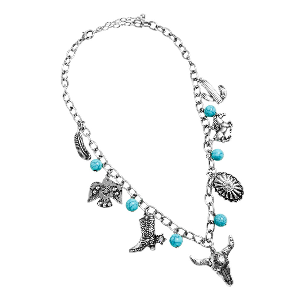 Boho Western Cowboy Boot Steer Head Cactus Concho Feather Charm Station Necklace Boho Western Cowboy Boot Steer Head Cactus Concho Feather Charm Station Necklace Boho Western Cowboy Boot Steer Head Cactus Concho Feather Charm Station Necklace