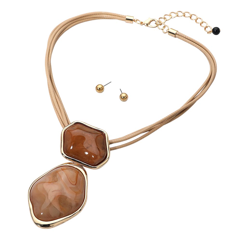 • Bold pendant necklace paired with coordinating stud earrings for a complete look. The unique layered design adds eye-catching detail, making this set perfect for elevating casual outfits or complementing evening attire with effortless elegance.