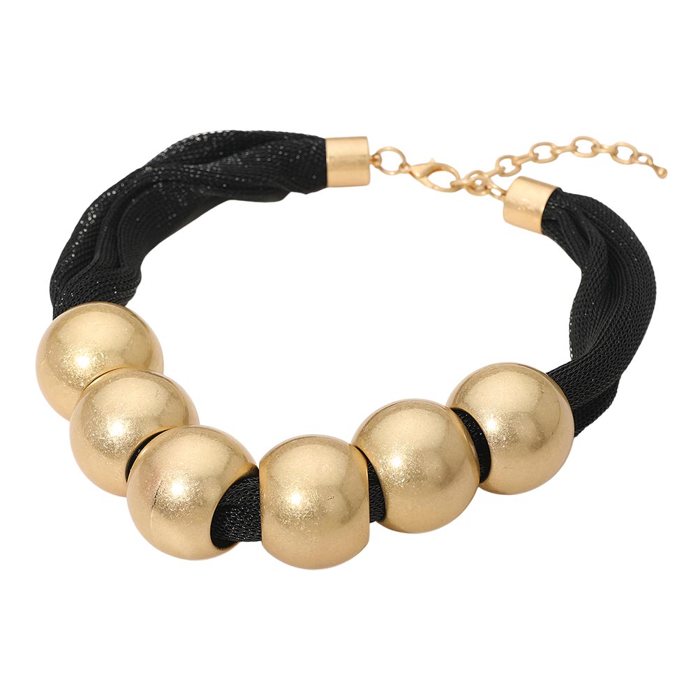 Details • Necklace Size : 18" + 3" L • Decor Size : 1.25" L • Make a striking statement with this bold mesh chain necklace featuring large rounded beads for a modern, sculptural look. Adjustable for a perfect fit, it adds instant impact to casual or dressy outfits. A standout accessory for gifting or elevating any jewelry collection with contemporary flair. • Lead and Nickel Compliant