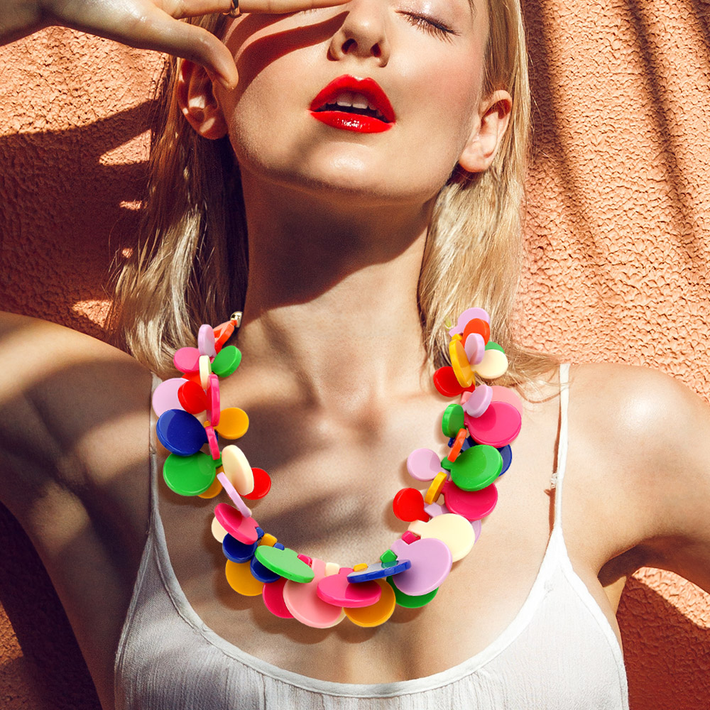 Bold Colorful Resin Disc Beaded Statement Necklace