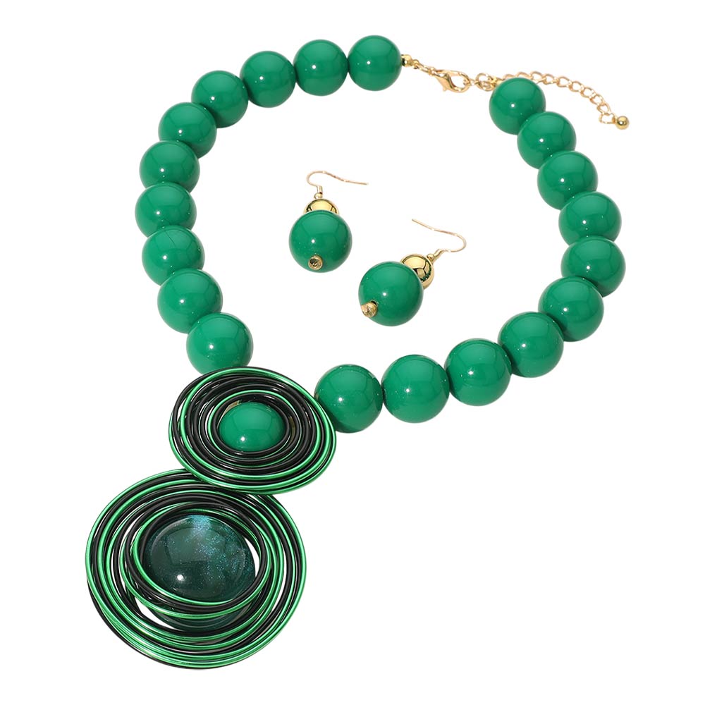 • This statement beaded necklace and earring set delivers bold, coordinated style with a striking pendant design and matching drop earrings. Created to elevate everyday outfits or complete dressy looks, this set is ideal for gifting, boutique collections, and trend-driven displays. A versatile accessory that adds polished impact to any jewelry assortment.