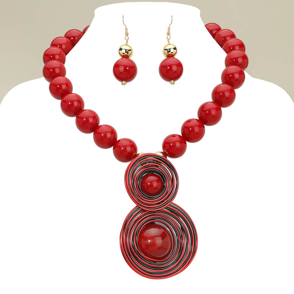 • This statement beaded necklace and earring set delivers bold, coordinated style with a striking pendant design and matching drop earrings. Created to elevate everyday outfits or complete dressy looks, this set is ideal for gifting, boutique collections, and trend-driven displays. A versatile accessory that adds polished impact to any jewelry assortment.