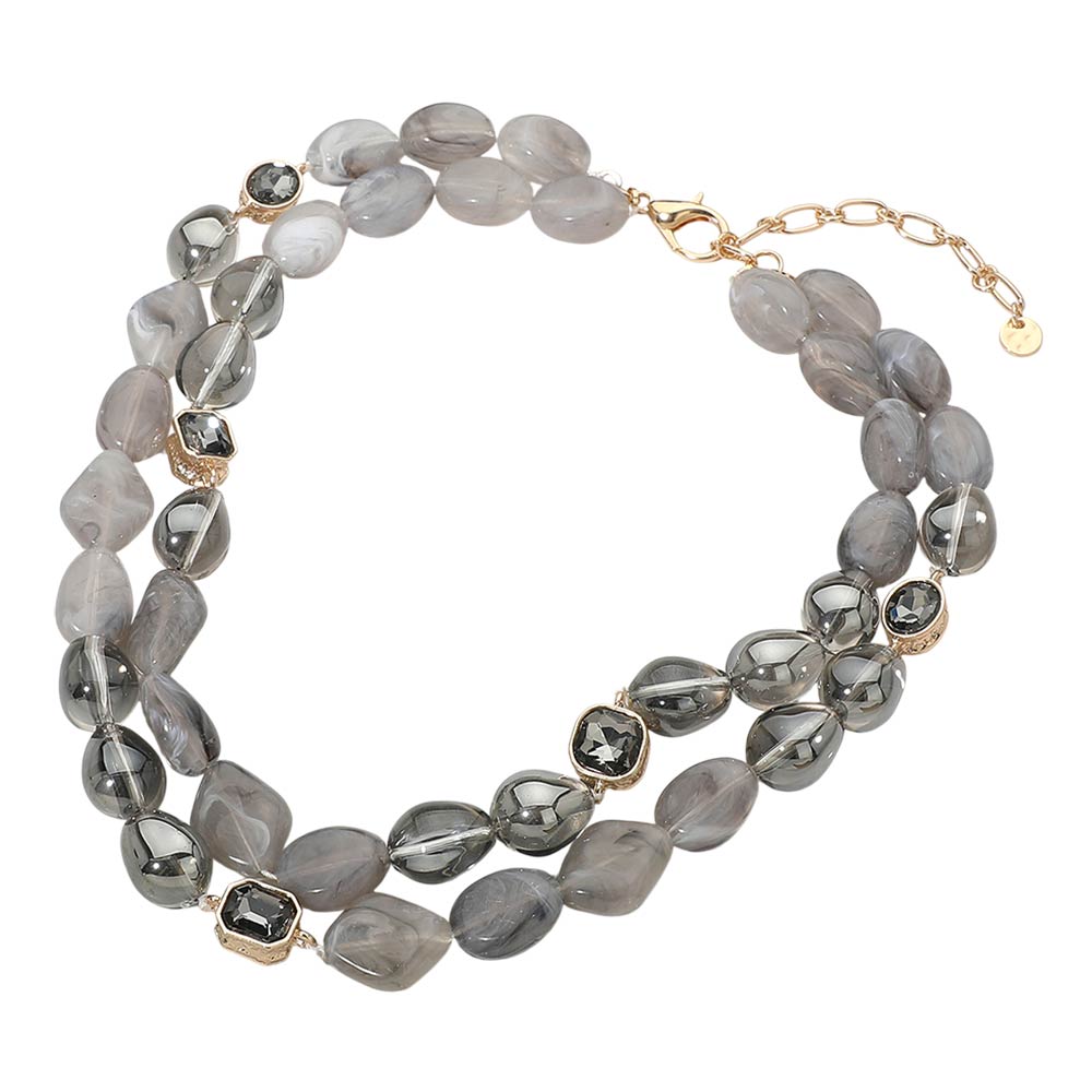 Bold Layered Marbled Pebble Faceted Beaded Necklace Bold Layered Marbled Pebble Faceted Beaded Necklace