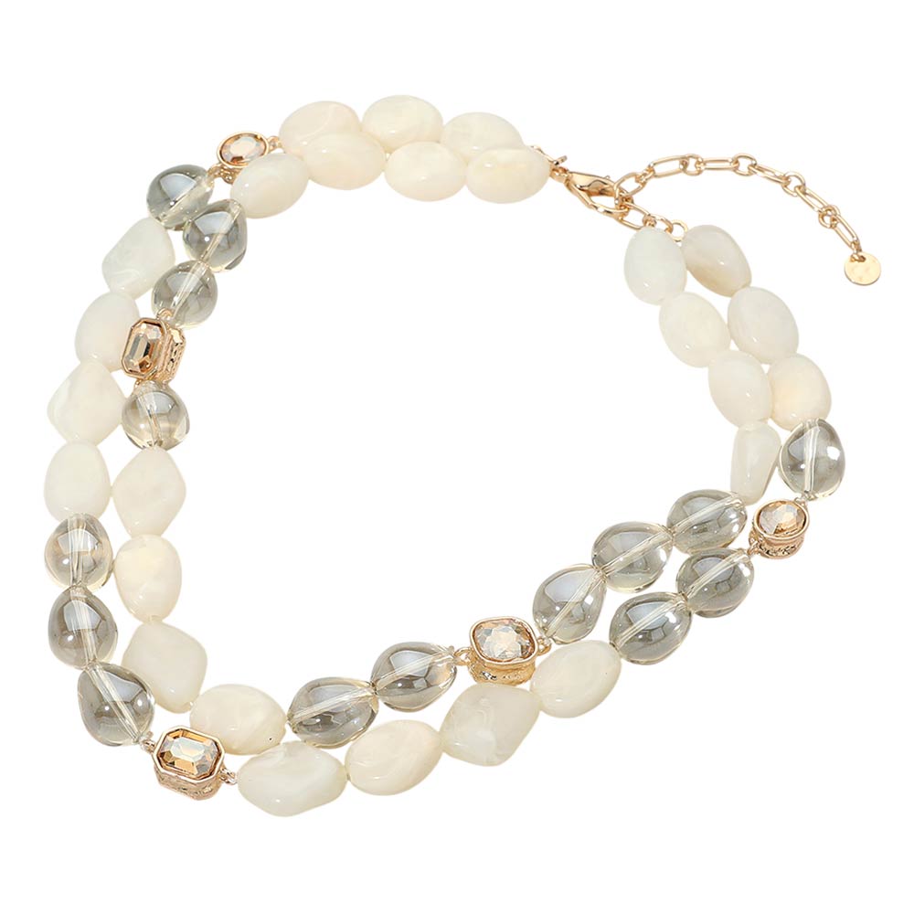 Bold Layered Marbled Pebble Faceted Beaded Necklace