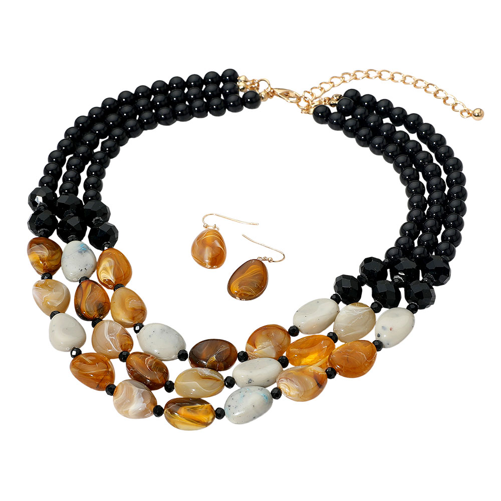 Bold Marbled Pebble Beaded Triple Layered Statement Necklace Bold Marbled Pebble Beaded Triple Layered Statement Necklace