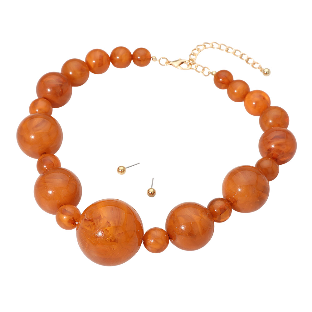 Bold Marbled Resin Ball Beaded Statement Necklace