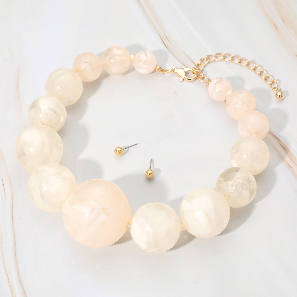 Details • Necklace Size : 17" + 4" L • Decor Size : 1.5" L • Earrings Size : 0.2" L • Enhance your outfit with this glossy round beaded necklace and matching stud earring set. The graduated bead design adds depth and balance, while the adjustable chain ensures a perfect fit. Ideal for creating a bold yet elegant statement that transitions effortlessly from day to night. • Lead and Nickel Compliant