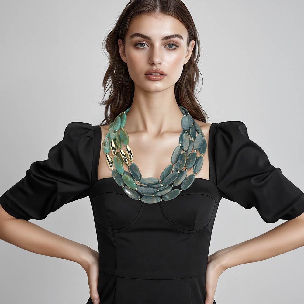 • Bold layered statement necklace designed with smooth oval elements and polished accents for a refined yet eye-catching look. This multi-strand design adds depth and movement, making it an ideal centerpiece for elevated everyday outfits or styled collections seeking modern statement jewelry with versatile appeal.