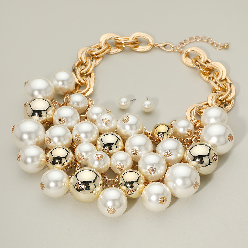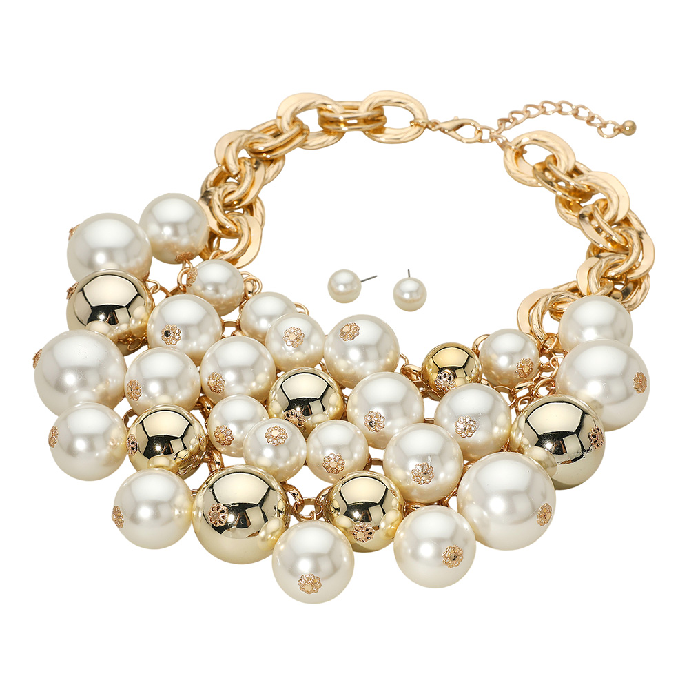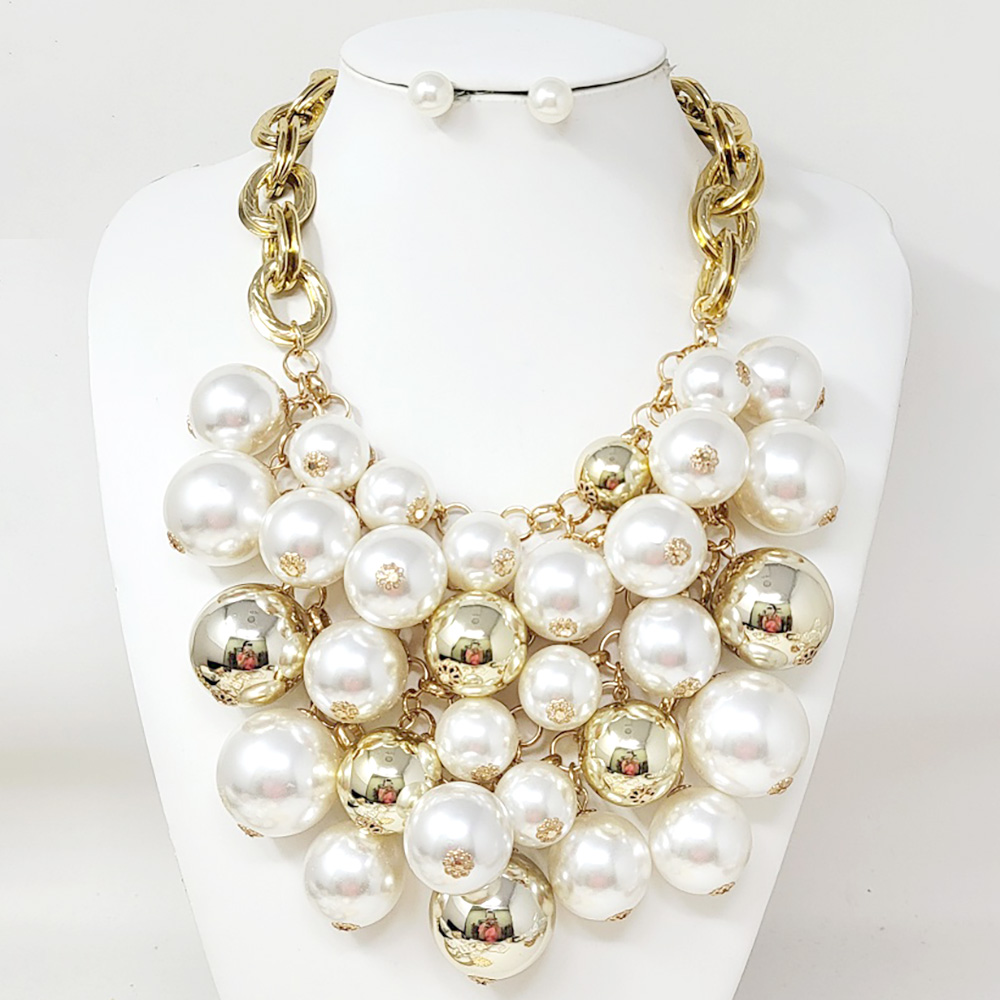 Details • Necklace Size : 18.5" + 3.25" L • Decor Size : 4" L • Earrings Size : 0.4" L • Make a striking impression with this bold statement necklace designed with oversized reflective beads and chunky chain links. Perfect for glamorous evenings or standout fashion looks, this dramatic piece brings shine, sophistication, and modern edge to any outfit. • Lead and Nickel Compliant