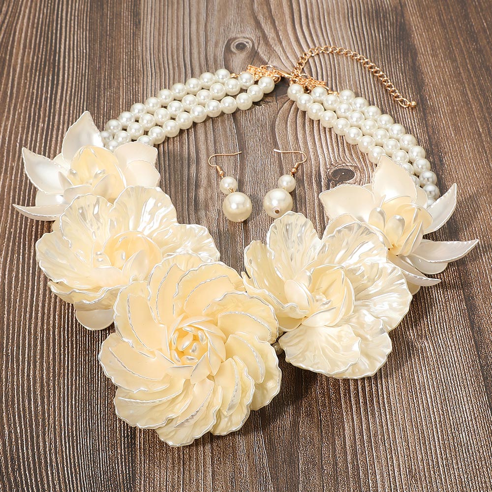 • An elegant statement necklace set featuring layered floral accents and coordinating earrings with an adjustable fit. Designed to elevate formal looks, weddings, parties, and special occasions, offering graceful style and standout detail for memorable outfits.