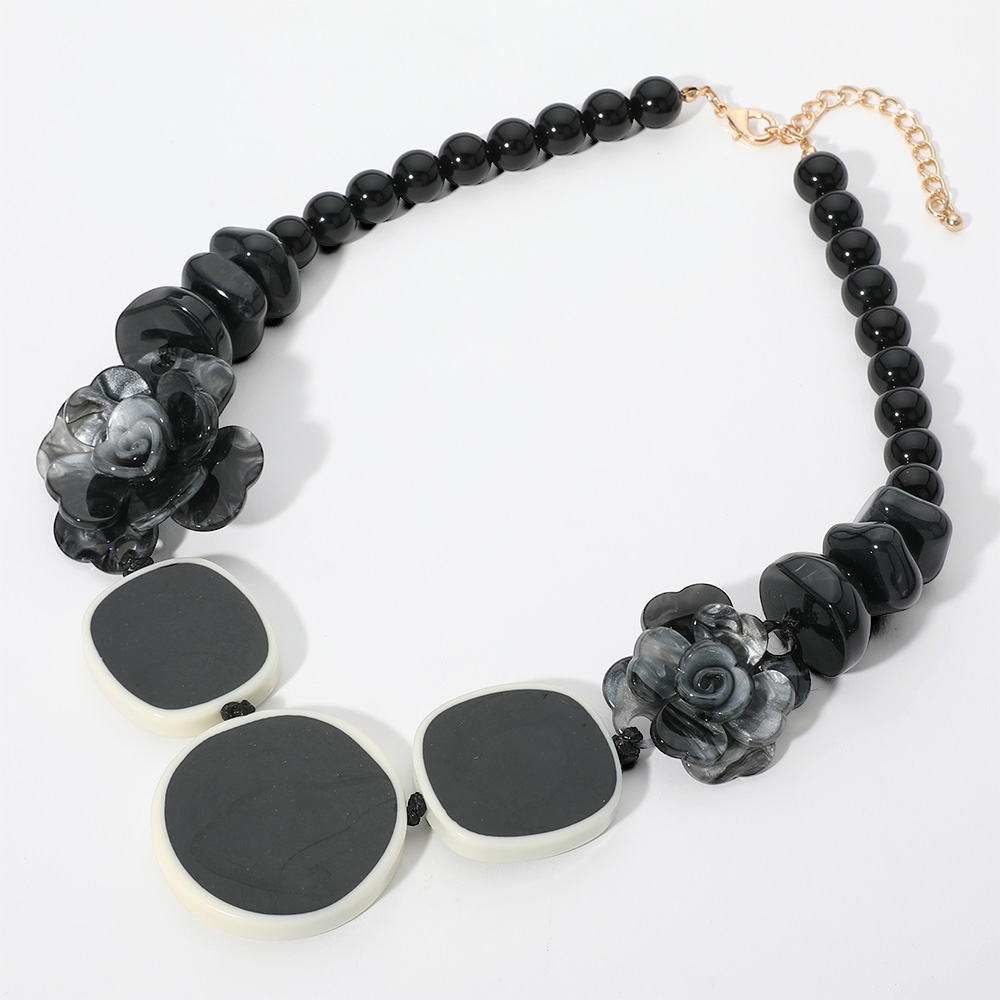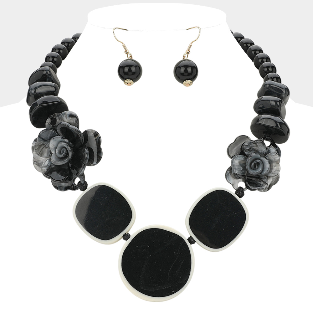 Bold Resin Flower Geometric Beaded Statement Necklace