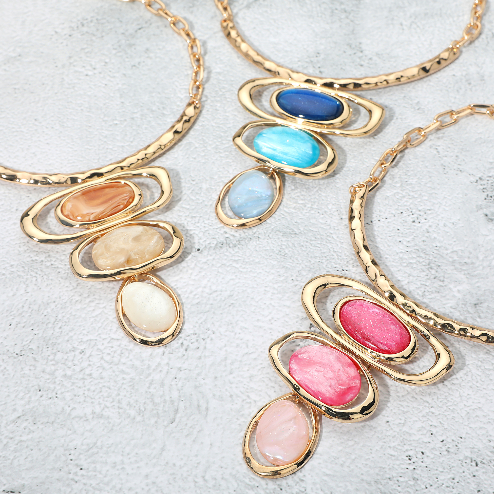 Bold Resin Geometric Pendant Accent Statement Necklace