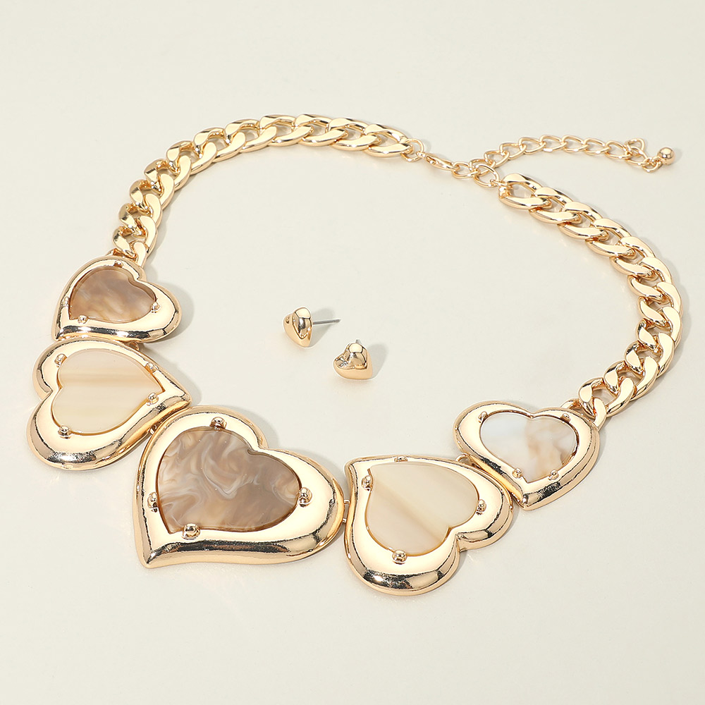• This bold heart statement necklace and stud earring set features oversized heart accents paired with a sleek chain silhouette for high visual impact. Designed for trend-driven styling, it is perfect for boutiques, gifting moments, and statement looks that stand out in everyday wear or special occasions.