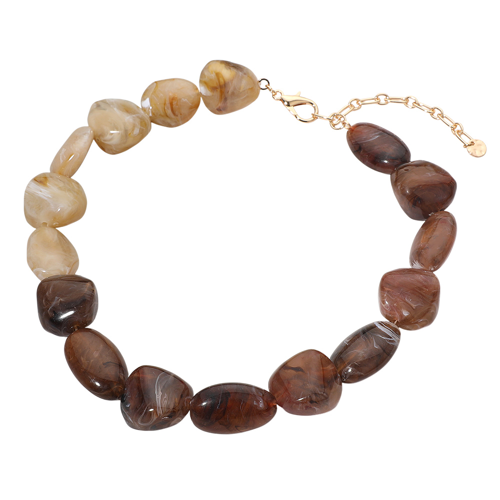 Details • Necklace Size : 17" + 3.5" L • Decor Size : 1" L • Bold nugget bead statement necklace featuring large irregular-shaped beads with a smooth polished finish. Designed with an adjustable extender for a comfortable fit, this eye-catching accessory adds natural elegance and texture to everyday looks or elevated outfits. Perfect for gifting or styling. • Lead and Nickel Compliant