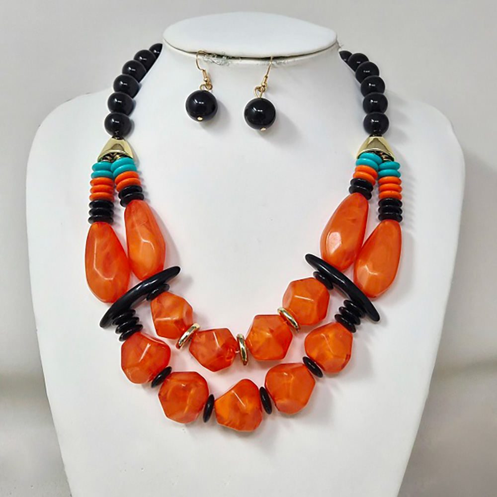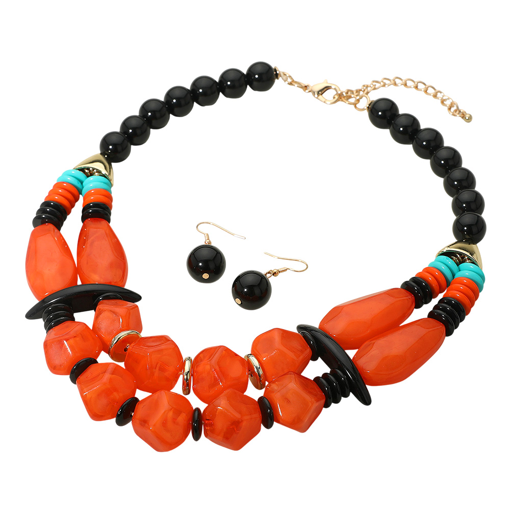 Bold Resin Pebble Beaded Layered Statement Necklace