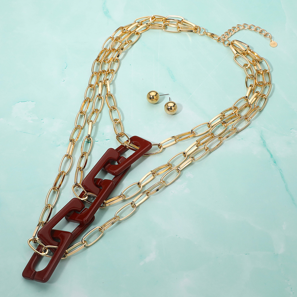 Bold Resin Square Chain Link Accent Paperclip Chin Layered Statement Necklace
