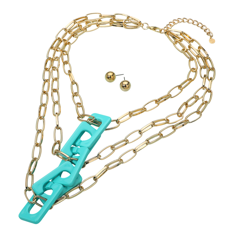 Details • Necklace Size : 18.5" + 4"L • Decor Size : 5" L • Earrings Size : 0.4" L • Bold layered chain necklace designed with oversized links and paired with matching stud earrings for a polished finish. Perfect for making a statement, this versatile jewelry set complements casual and dressy looks, adding modern edge and sophistication to your accessory collection. • Lead and Nickel Compliant