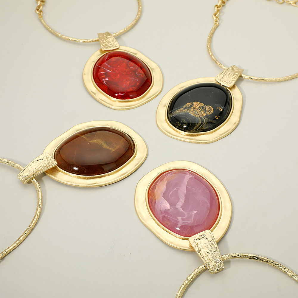 Bold Sculptural Oval Resin Plate Pendant Accent Statement Necklace