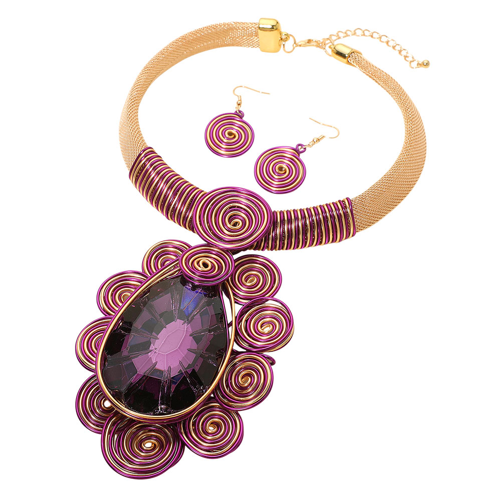 • Make an impression with this bold teardrop statement necklace and matching earrings, featuring artistic swirl accents and a radiant centerpiece. Perfect for special occasions, parties, or elevating everyday fashion with a unique touch.