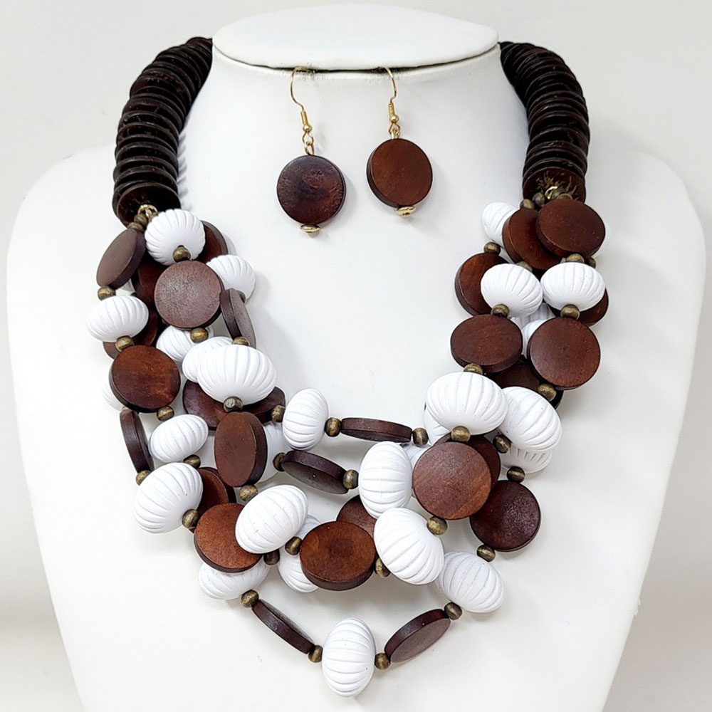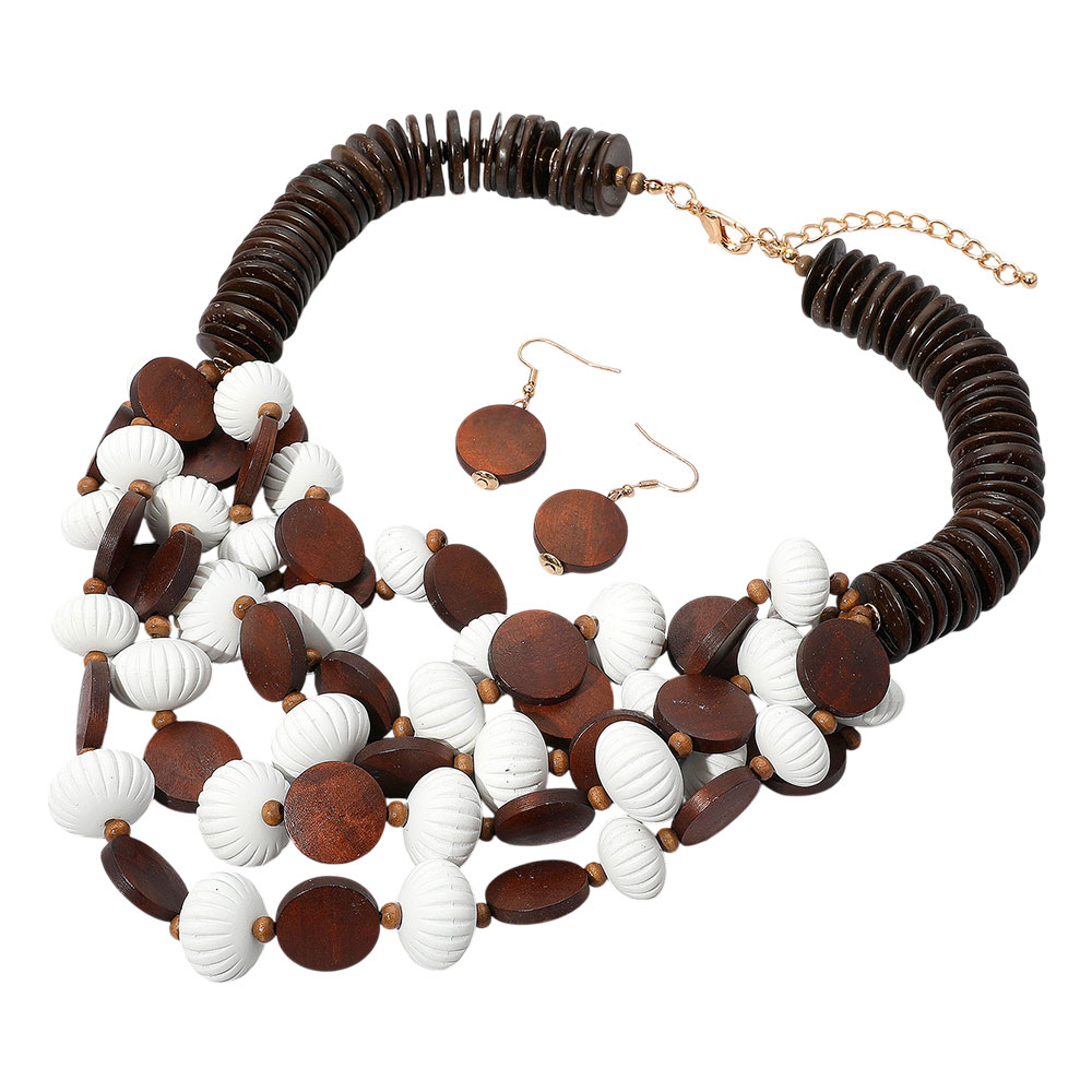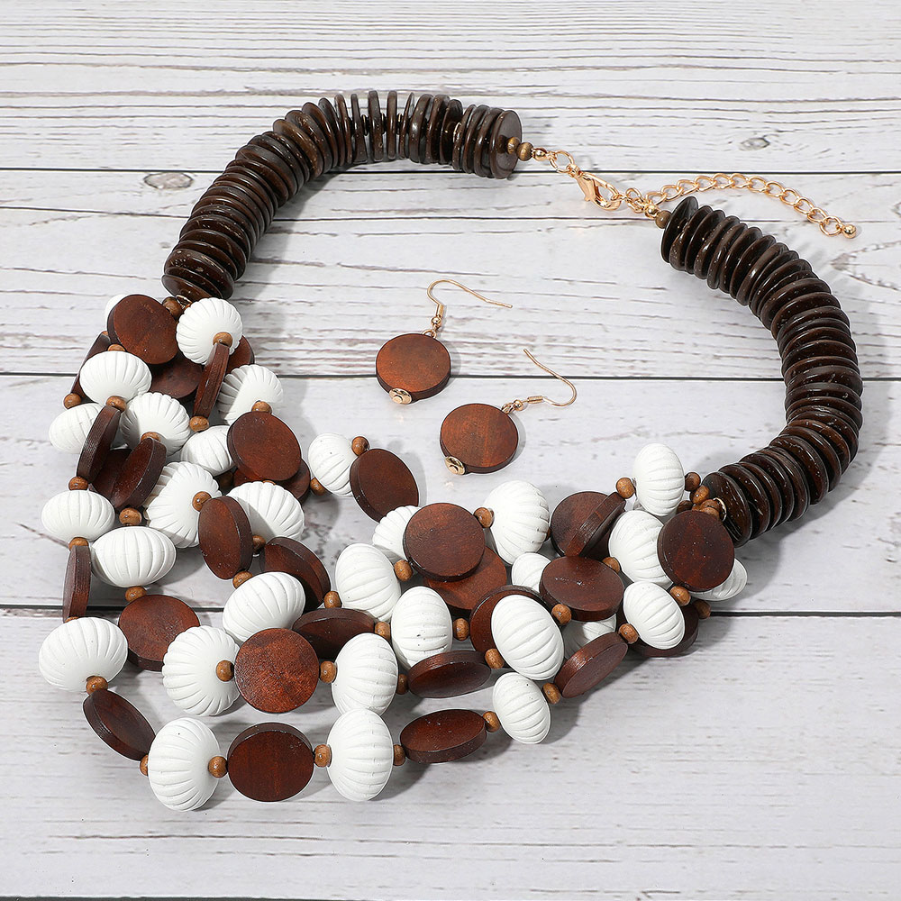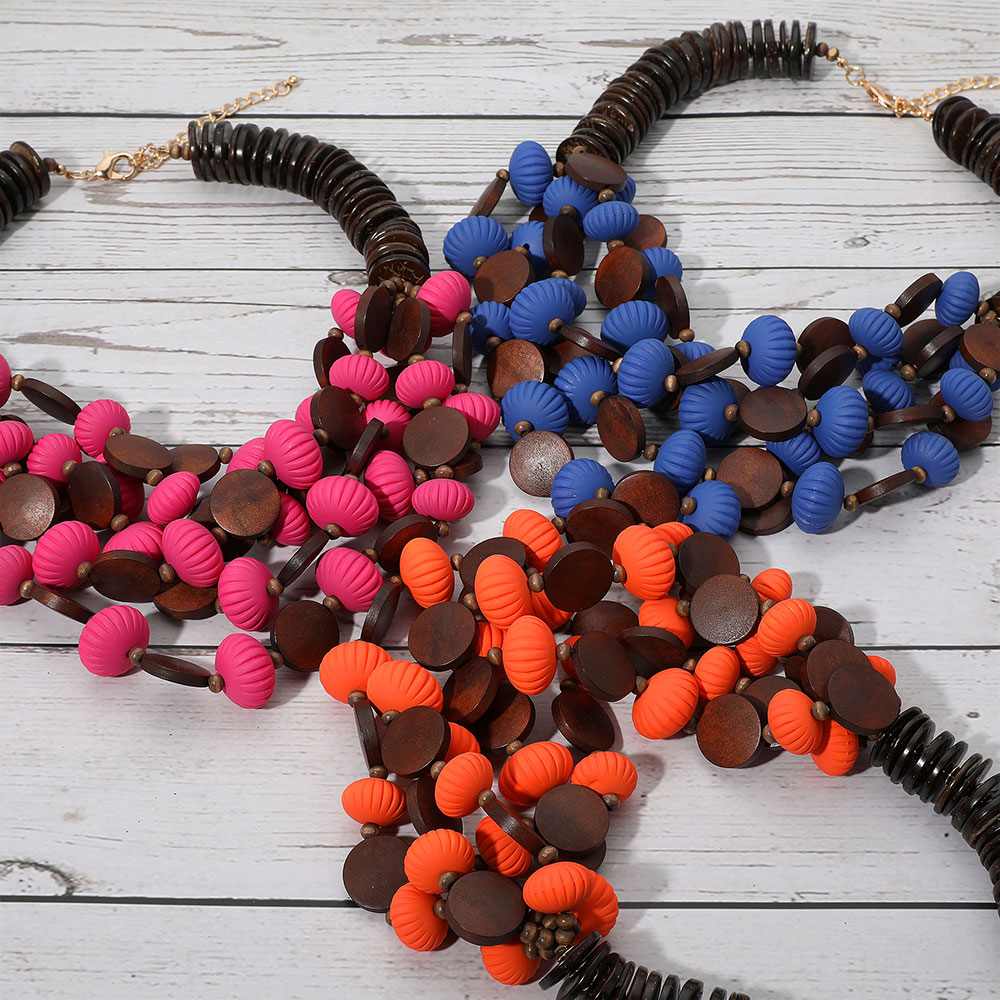 Bold Tribal Wooden Beaded Layered Statement Necklace