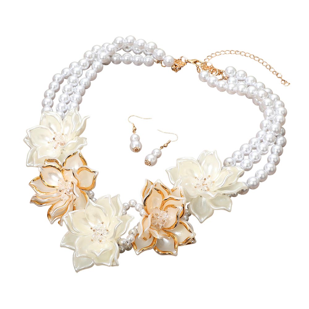 Details • Necklace Size : 23" + 4" L • Decor Size : 2.5" L • Earrings Size : 1.5" L • An elegant multi-strand necklace set featuring layered floral accents and coordinating earrings with an adjustable fit. Ideal for weddings, formal events, parties, and special occasions, delivering graceful style, lightweight comfort, and standout charm for memorable looks. • Lead and Nickel Compliant