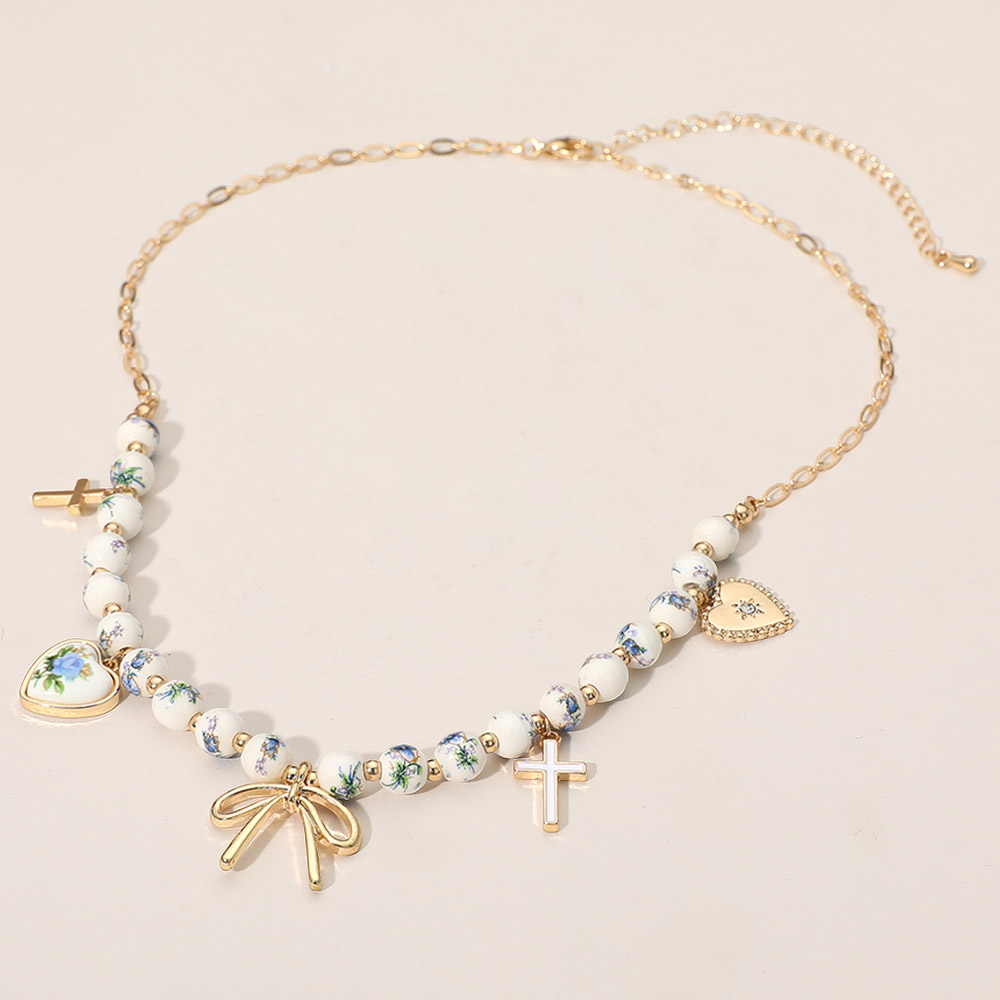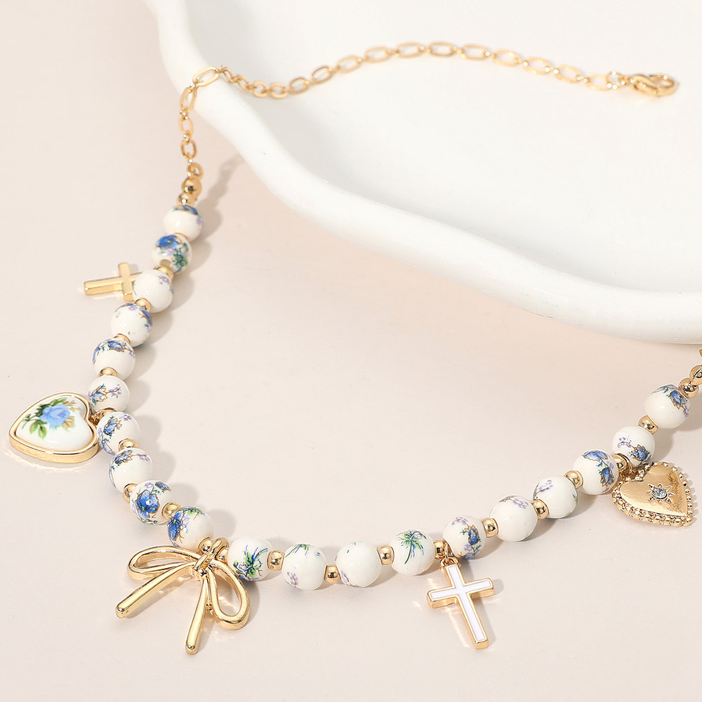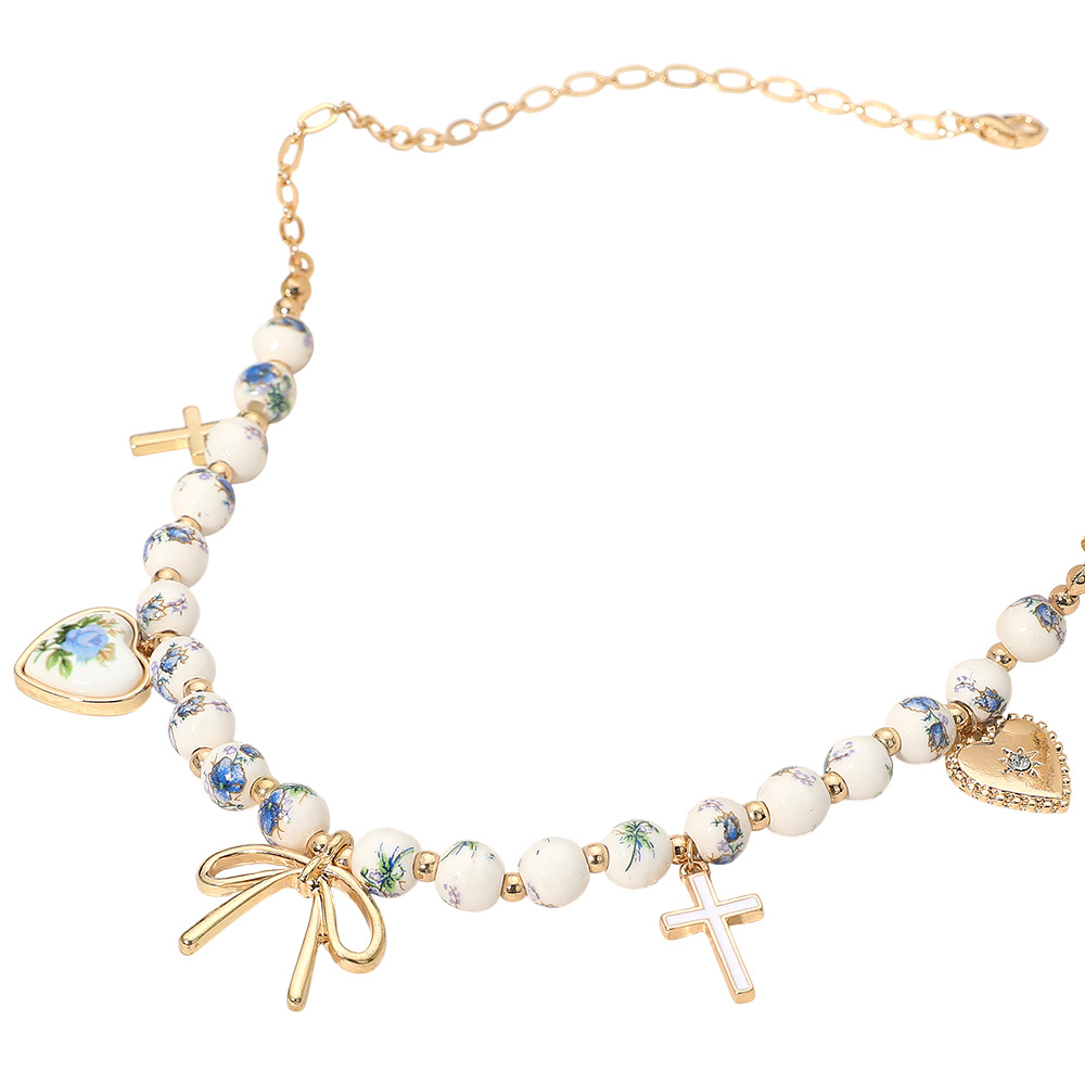 Details • Necklace Size : 16" + 3.5" L • Decor Size : 1" L • This beaded charm necklace features a mix of delicate beads and detailed pendants, including heart and cross accents, creating a timeless and romantic look. Perfect for layering or wearing alone, it adds a refined touch of charm and elegance to any outfit. • Lead and Nickel Compliant