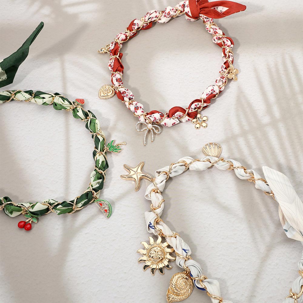 Sun Starfish Shell Charm Fabric Scarf Necklace