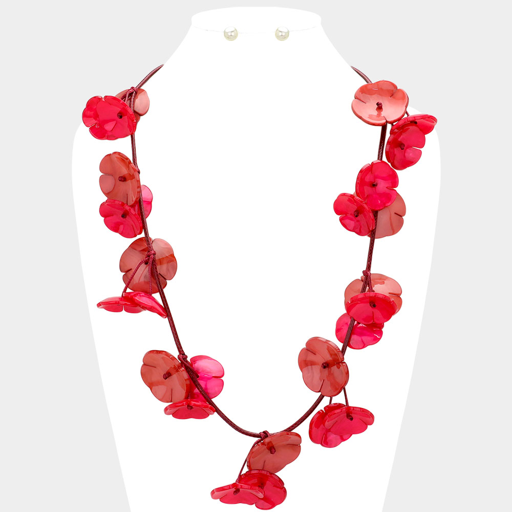 Celluloid Acetate Flower Beaded Faux Leather Necklace