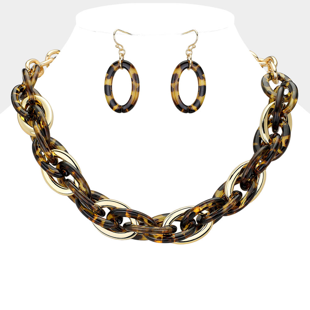 Details • Necklace Size : 17" + 3" L • Decor Size : 0.75" L • Earrings Size : 1.75" L • Add a touch of modern flair with this chic linked chain necklace and earring set. Featuring a blend of glossy and polished oval links, this stylish duo delivers a bold yet elegant statement—perfect for elevating both everyday looks and sophisticated evening outfits. • Lead and Nickel Compliant