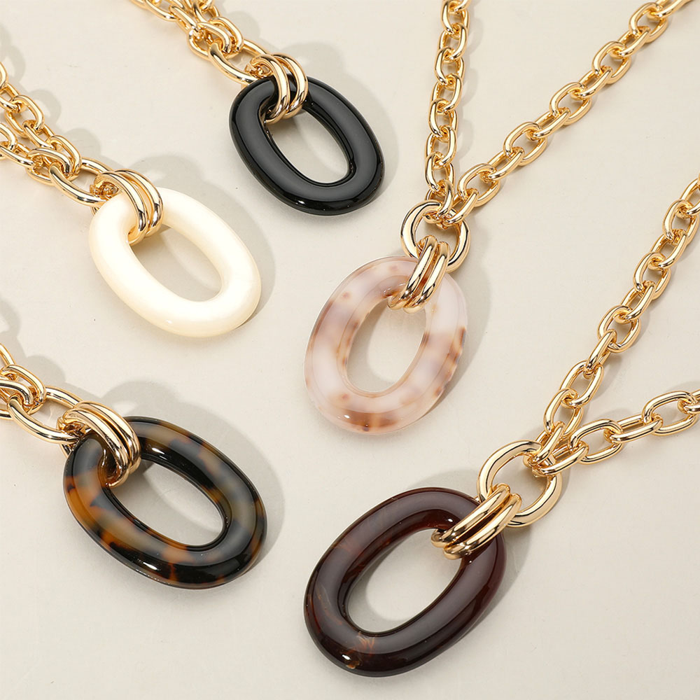 Celluloid Acetate Oval Ring Pendant Chunky Chain Necklace