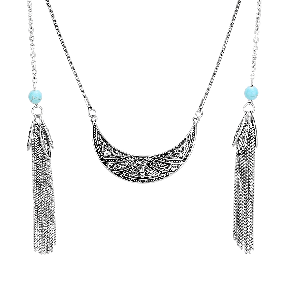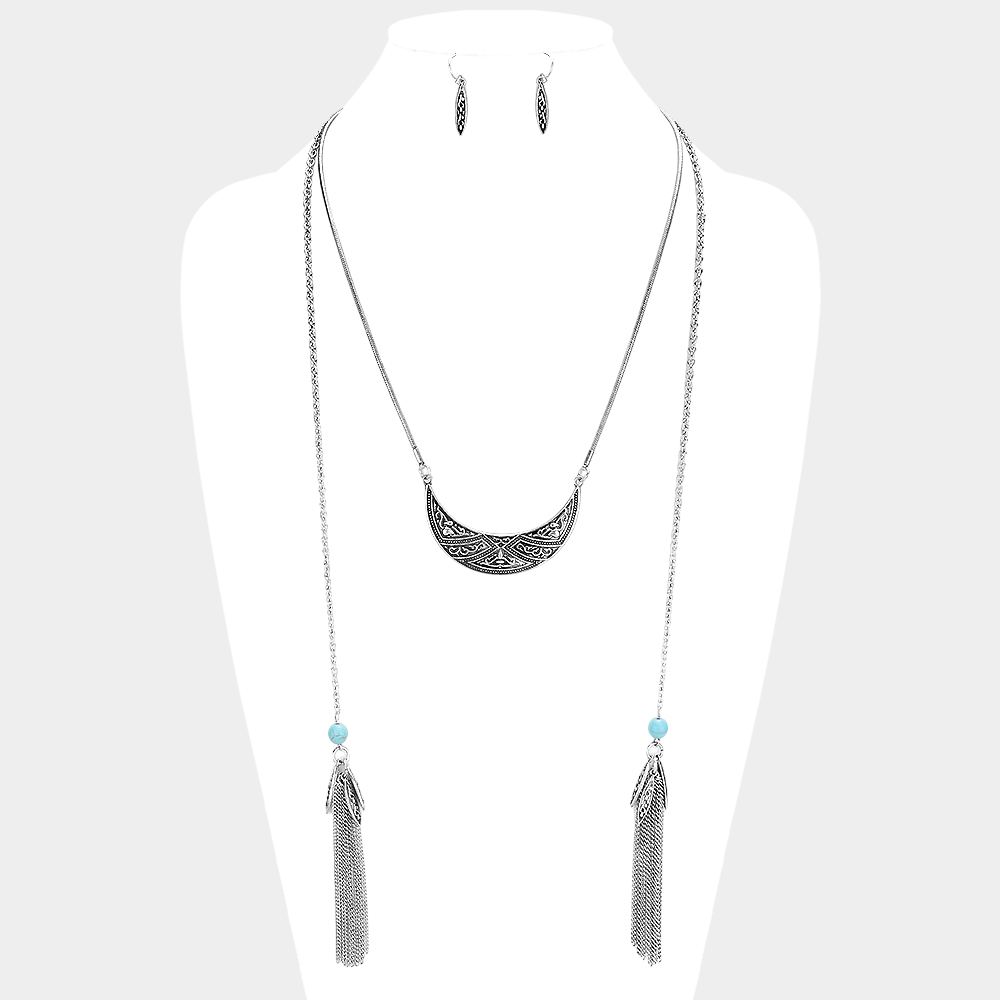 Antique Metal Natural Stone Accented Filigree Collar Necklace