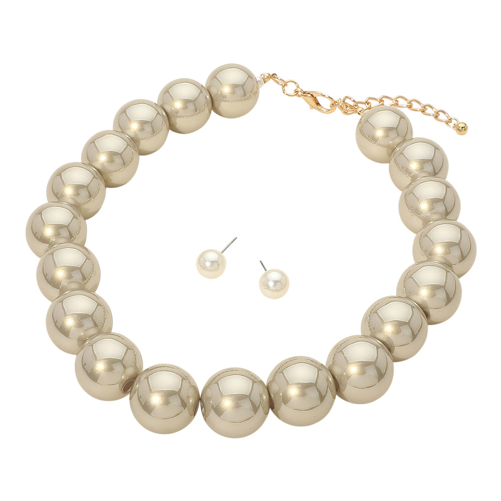 • Timeless round bead necklace paired with matching stud earrings, designed for a polished and coordinated look. This versatile jewelry set offers statement simplicity with everyday elegance, making it ideal for boutiques seeking classic accessories that transition easily from casual styling to special occasions.