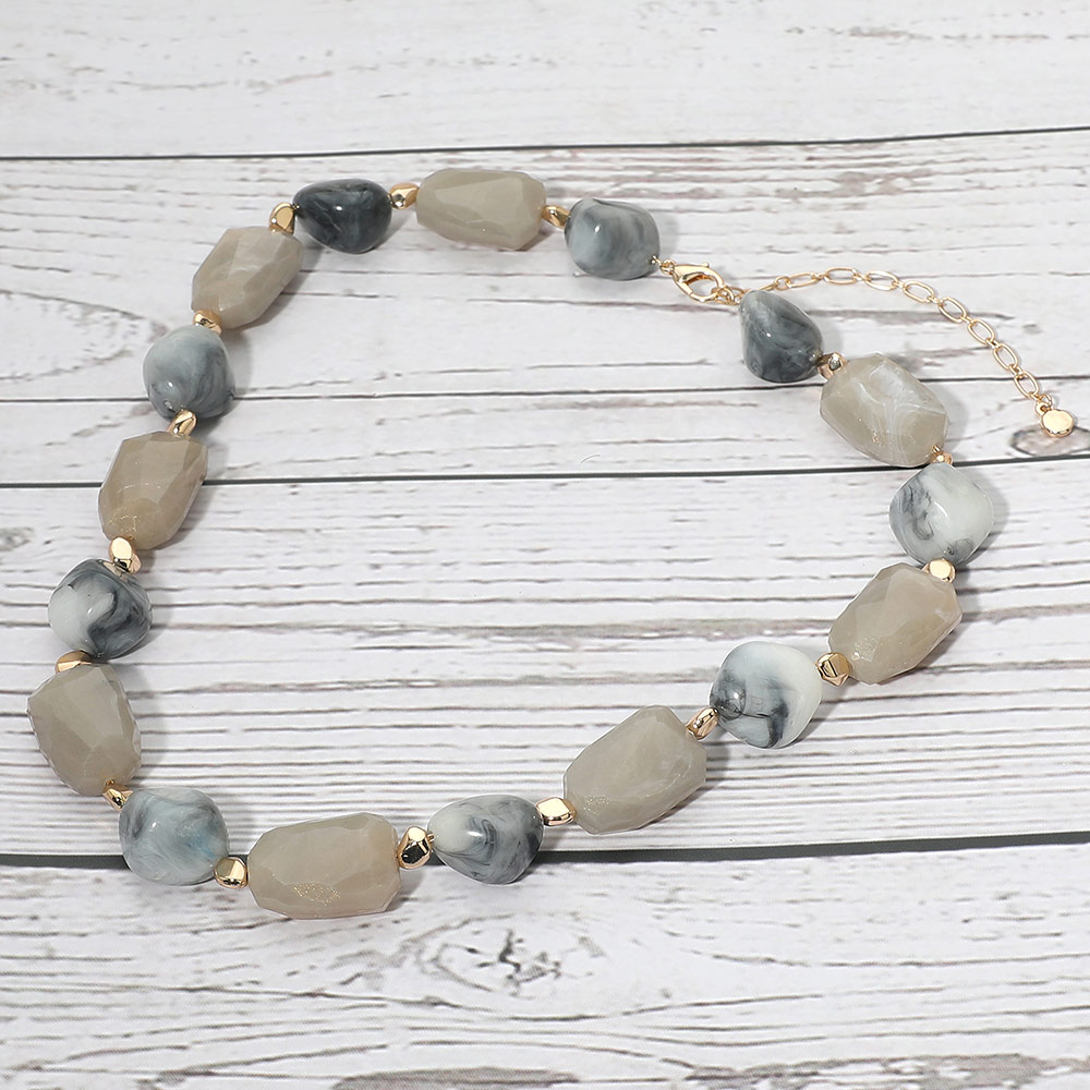 Details • Necklace Size : 16.5" + 3" L • Decor Size : 0.6" L • This station necklace features alternating faceted bead shapes linked with smooth spacers, creating balanced texture and soft movement along the neckline. Designed for everyday wear or easy layering, it fits casual to polished looks and works well for boutique collections, gift assortments, and trend-focused jewelry displays. • Lead and Nickel Compliant
