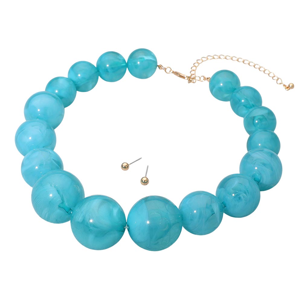 Chunky Marbled Ball Beaded Bold Statement Necklace Chunky Marbled Ball Beaded Bold Statement Necklace