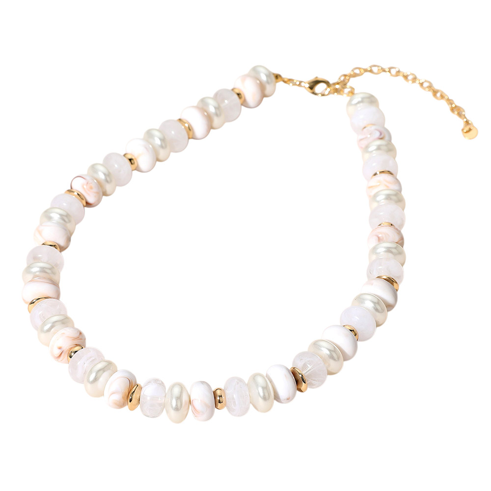Marbled Round Shaped Beads Pearl Beaded Necklace