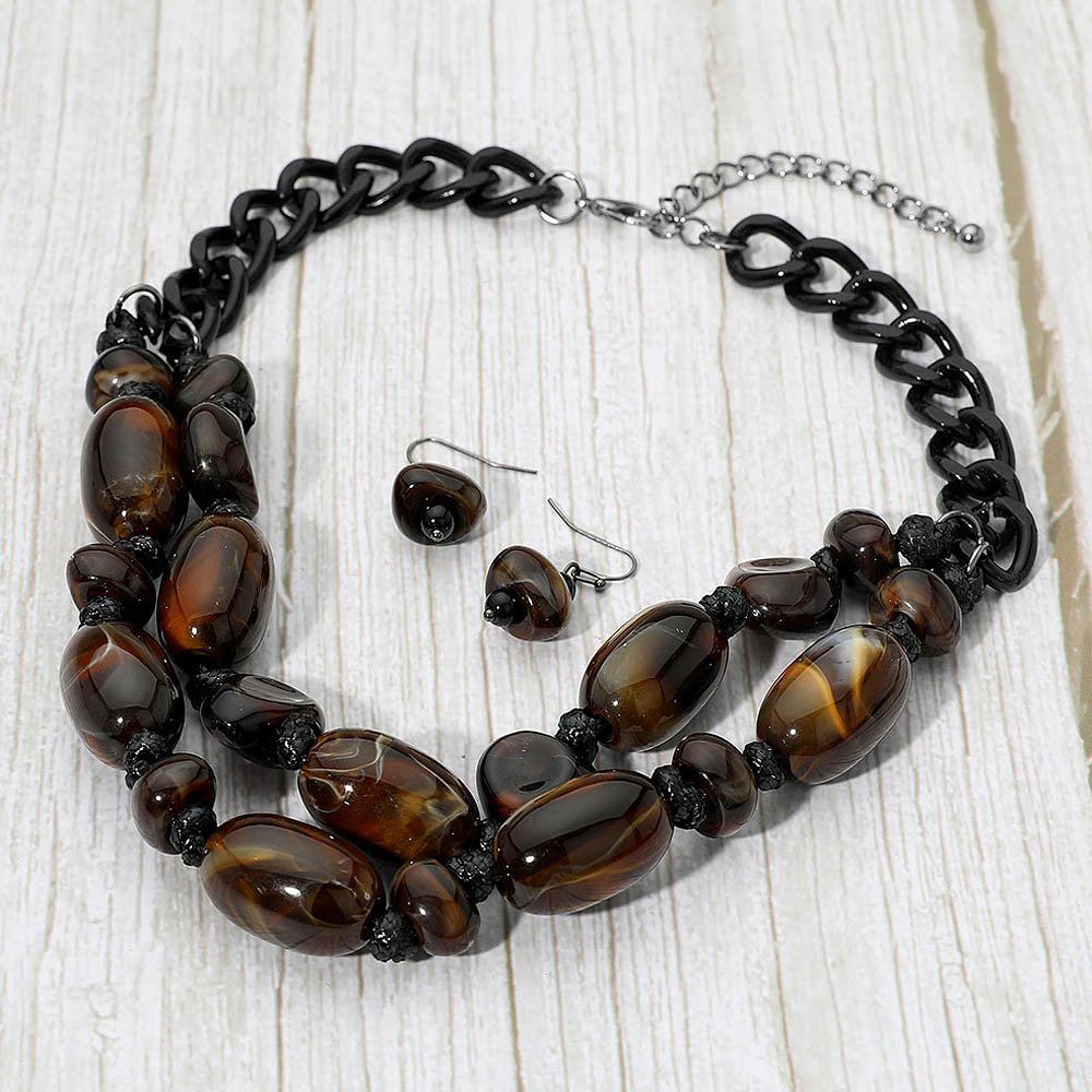 Chunky Marbled Pebble Beaded Layered Statement Necklace Chunky Marbled Pebble Beaded Layered Statement Necklace
