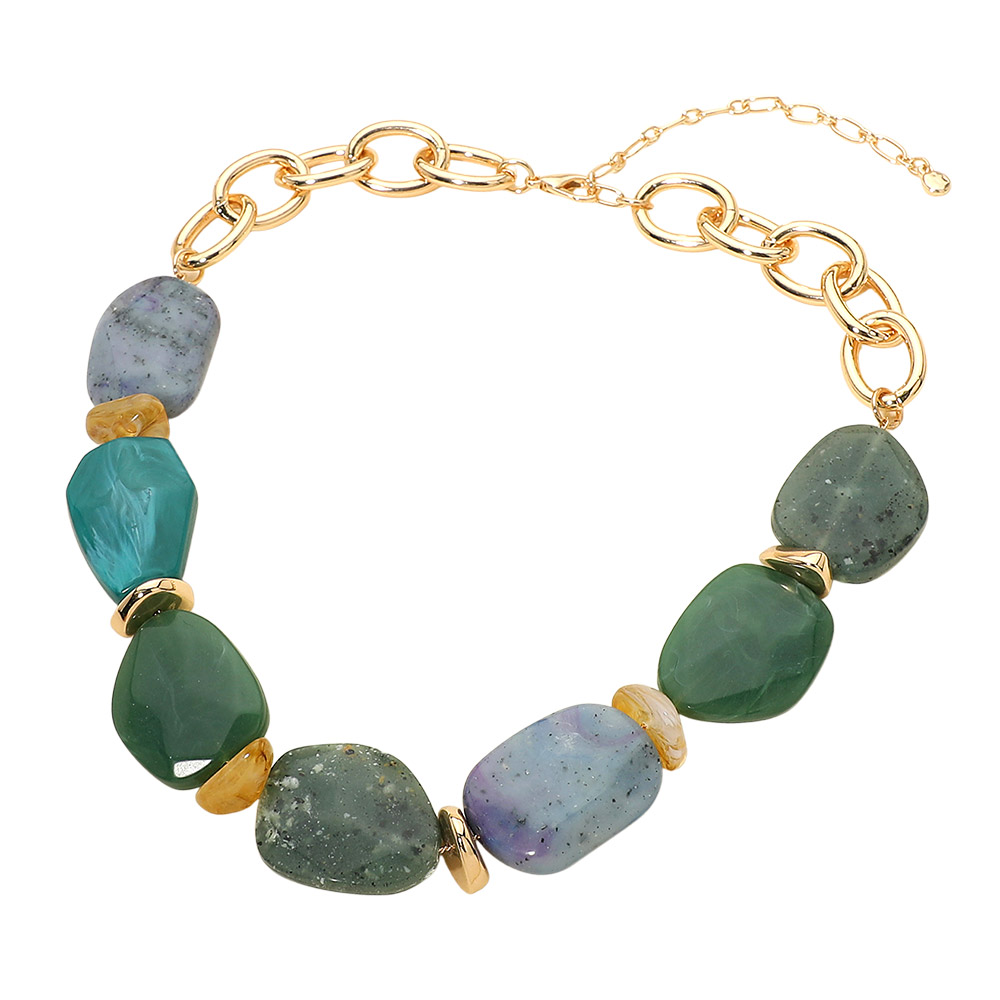 Chunky Marbled Resin Beaded Chain Link Statement Necklace Chunky Marbled Resin Beaded Chain Link Statement Necklace