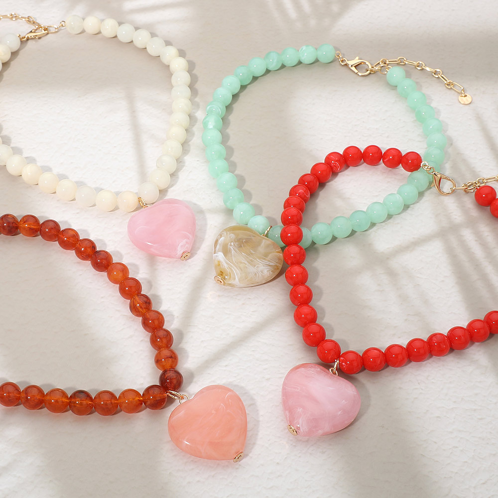 Chunky Marbled Resin Heart Charm Beaded Necklace Chunky Marbled Resin Heart Charm Beaded Necklace Chunky Marbled Resin Heart Charm Beaded Necklace