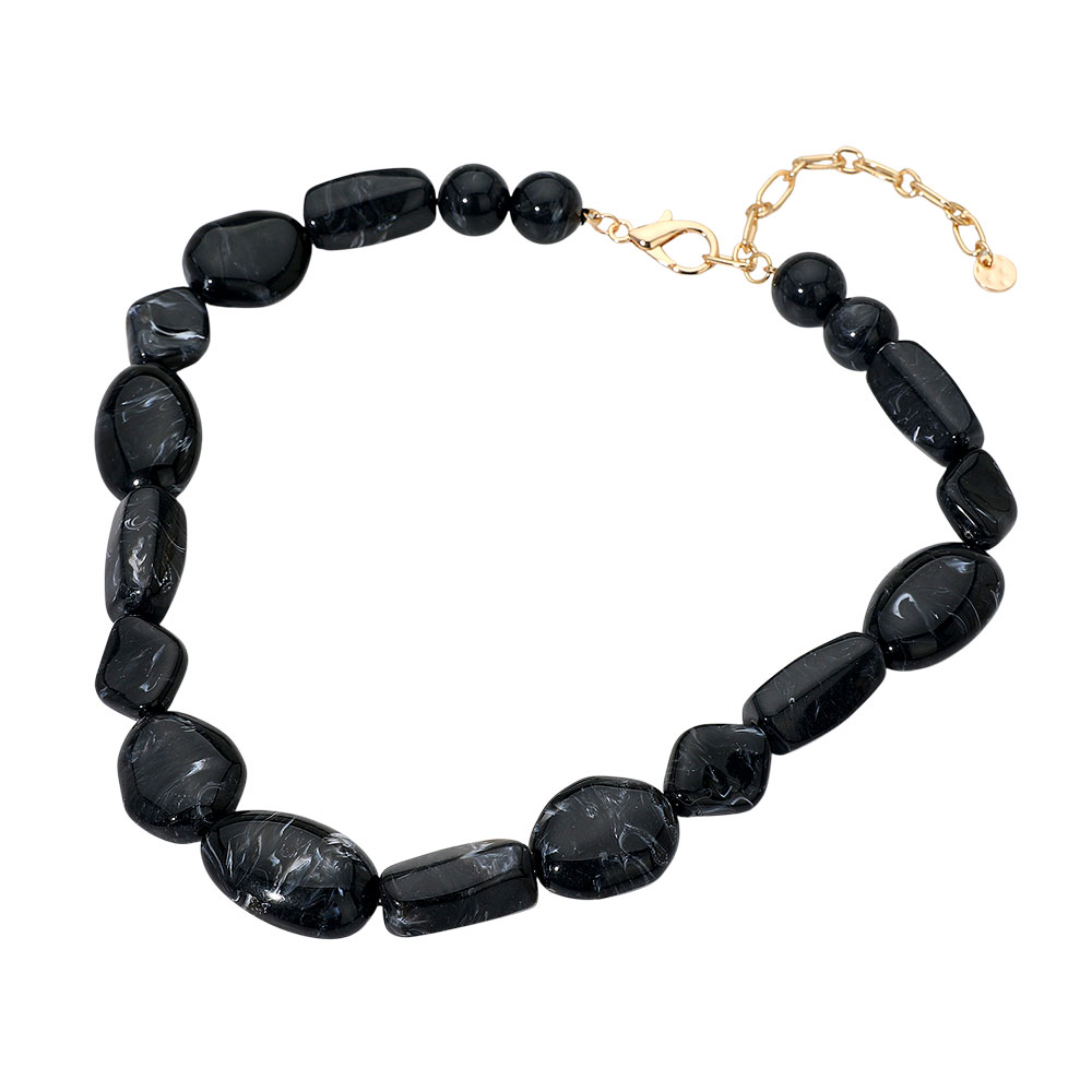 Chunky Marbled Resin Multi Shape Pebble Beaded Necklace Chunky Marbled Resin Multi Shape Pebble Beaded Necklace