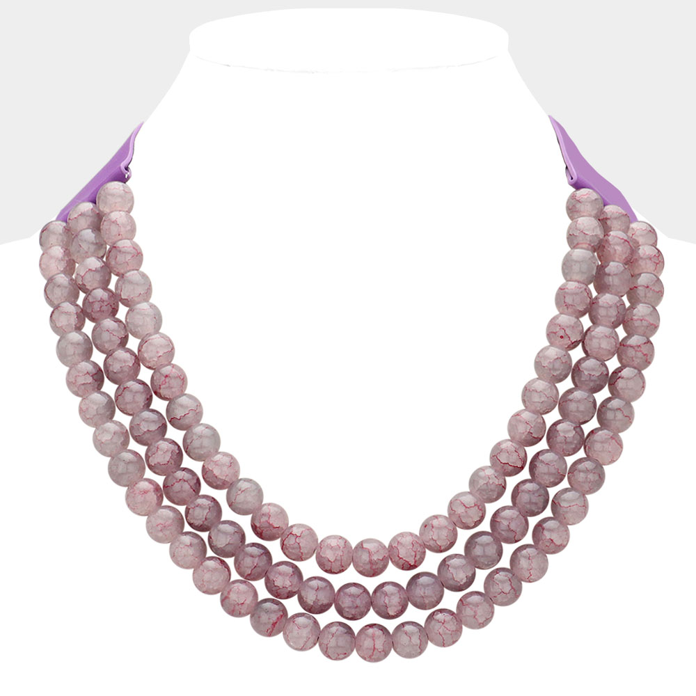 Chunky Metal Ball Beaded Triple Layered Faux Leather Magnetic Necklace