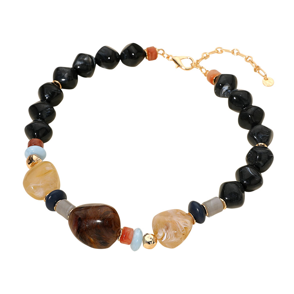 Details • Necklace Size : 20.5" + 3" L • Decor Size : 1" L • Stylish necklace featuring a mix of smooth and irregular beads in a balanced color pattern with a secure adjustable clasp. Perfect for everyday wear or layering with other accessories. Adds a touch of artistic charm and elegance to any outfit, making it a versatile jewelry staple. • Lead and Nickel Compliant