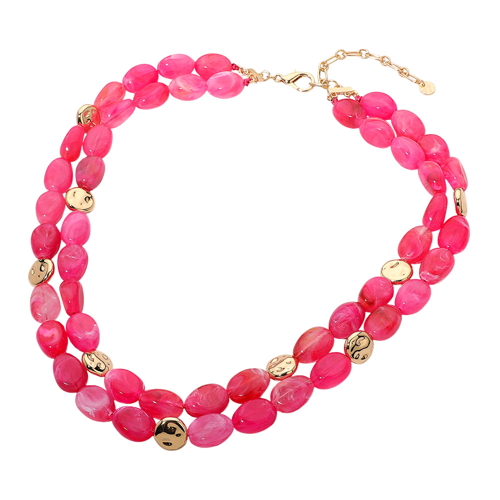 Chunky Oval Resin Pebble Beaded Layered Statement Necklace Chunky Oval Resin Pebble Beaded Layered Statement Necklace