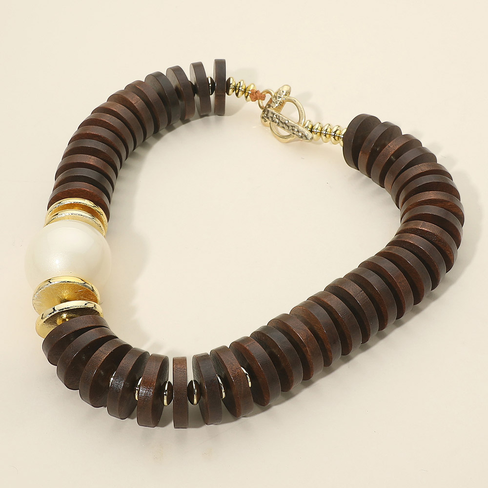 Chunky Pearl Accent Resin Disc Beaded Statement Necklace